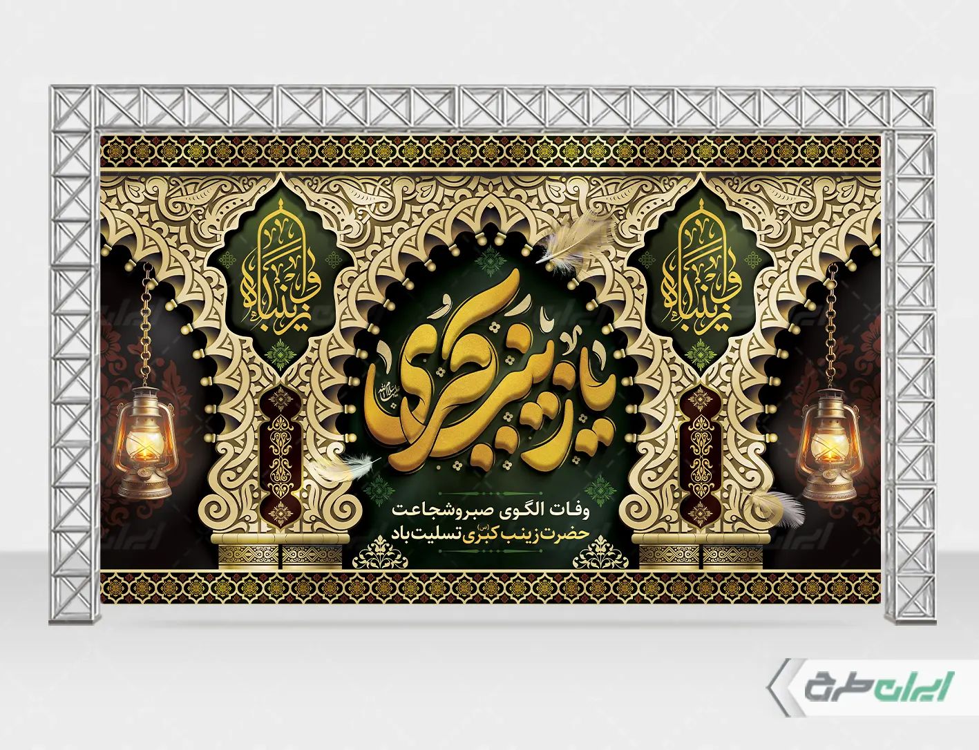 بنر وفات حضرت زینب (س)، توسط تیم حرفه ای ایران طرح جهت استفاده کاربران سایت طراحی و به صورت لایه باز در دسترس کاربران قرار گرفته است.