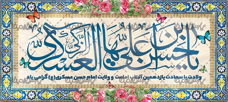 بنر ولادت امام حسن عسکری، جشن ولادت امام حسن عسکری، طرح بنر ولادت امام حسن عسکری، بنر لایه باز ولادت امام حسن عسکری، بنر لایه باز، بنر مناسبتی، تایپوگرافی