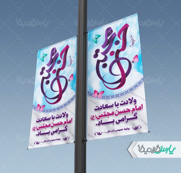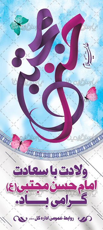 طرح بنر ولادت امام حسن مجتبی شامل:تصویر پروانه ، متن مرتبط با ولادت امام حسن می باشد که توسط تیم پارس گرافیک طراحی شده است. به دلیل استفاده از عناصر و المان های با کیفیت در طرح بنر مناسبتی ، می توانید علاوه بر چاپ بنر (به صورت افقی)، در استوری اینستاگرام و یا دیگر پلت فرم های فضای مجازی استفاده نمایید. ضمنا به دلیل لایه باز بود طرح بنر ولادت امام حسن مجتبی می توانید با استفاده از نرم افزار فتوشاپ تغییرات دلخواه خود را اعمال کنید.