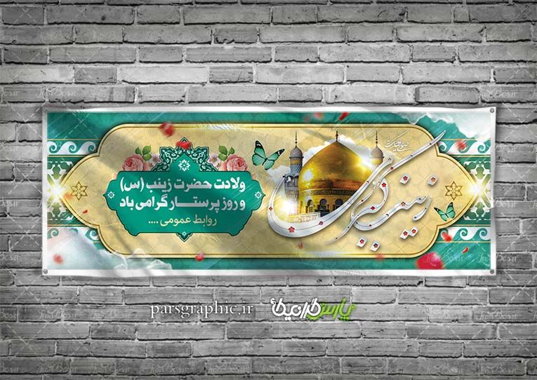 طرح بنر لایه باز ولادت حضرت زینب را از سایت پارس گرافیک دانلود نمایید .