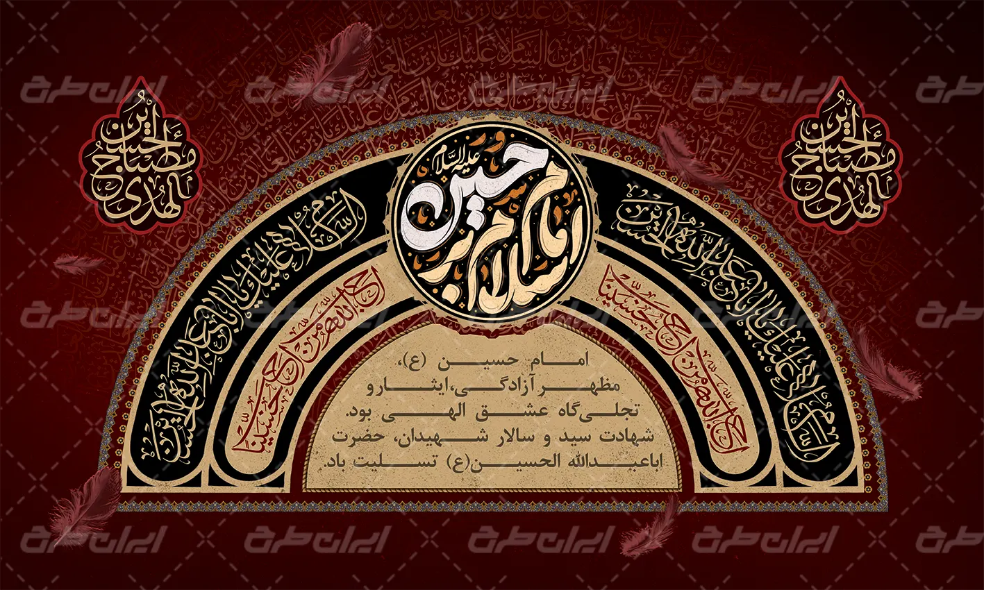 تایپوگرافی سلام بر امام حسین و تذهیب و متن مرتبط با ماه محرم می باشد که توسط طراحان ایران طرح در نرم افزار فتوشاپ طراحی شده است.