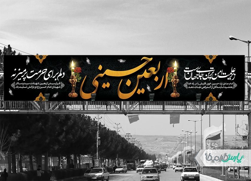 طرح بنراربعین حسینی شامل:تصویر شمع و شمعدان ، کادر مذهبی ، تذهیب و متن تسلیت اربعین حسینی و متن تسلیت اربعین میباشد که توسط طراحان پارس گرافیک در نرم افزار فتوشاپ طراحی شده است. به دلیل لایه باز (قابل ویرایش توسط کاربران در نرم افزار فتوشاپ Adobe Photoshop) بودن و کیفیت بالای عناصر و المان های استفاده شده در طرح بنر مناسبتی ، می توانید علاوه بر چاپ بنر(به صورت عمودی)، در استوری اینستاگرام و سایر پلت فرم های فضای مجازی استفاده نمایید.