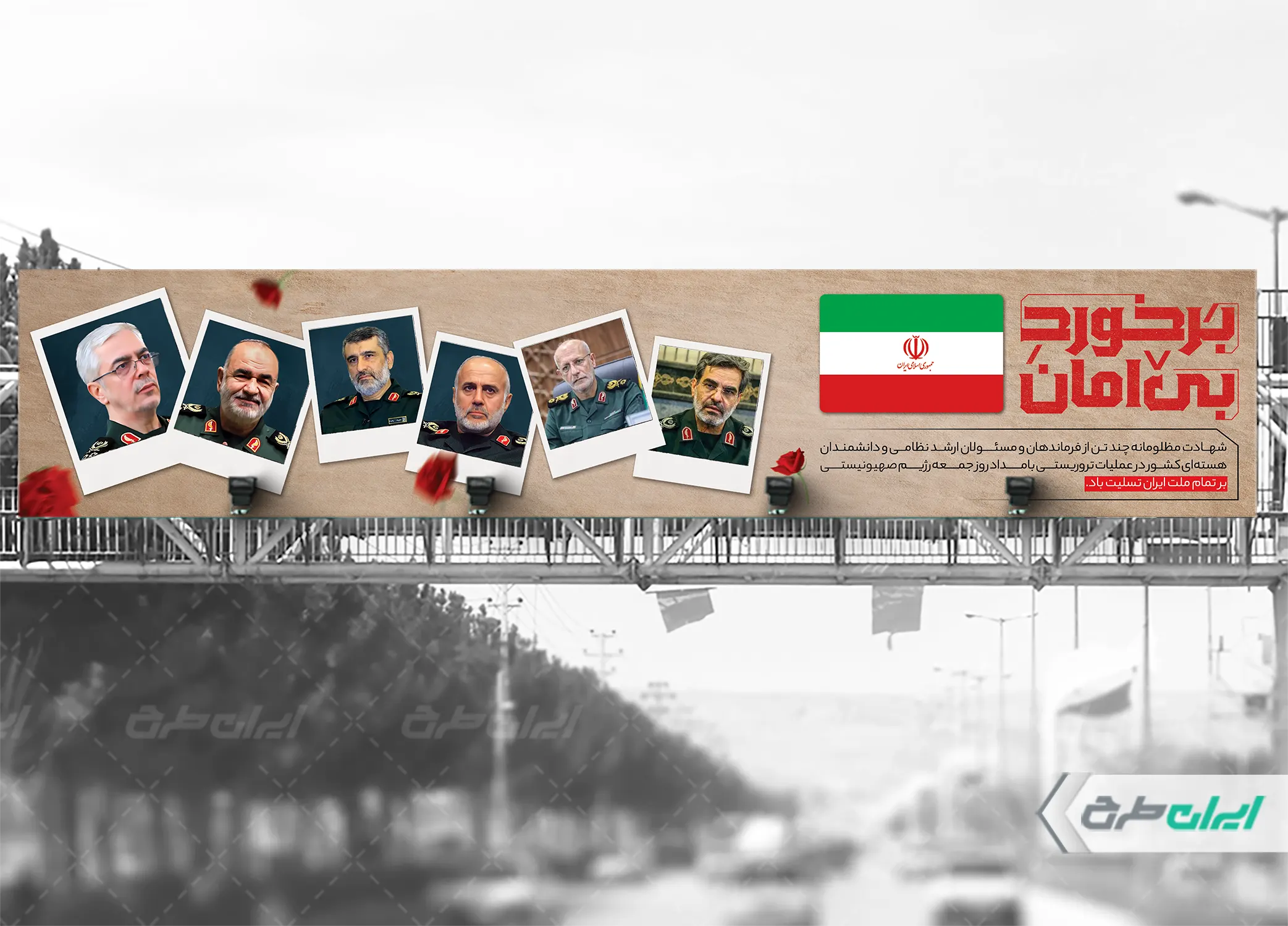 طرح بنر شهادت فرماندهان سپاه توسط تیم ایران طرح طراحی و در دسترس کاربران سایت قرار گرفته است.
