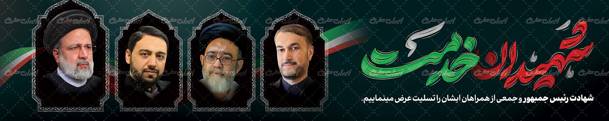 بنر تسلیت شهادت سید ابراهیم رئیسی، توسط تیم حرفه ای ایران طرح جهت استفاده کاربران سایت طراحی و به صورت لایه باز در دسترس کاربران قرار گرفته است.