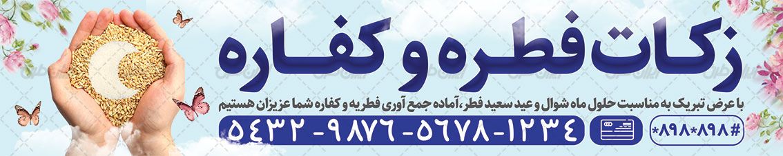 بنر زکات فطریه، توسط تیم حرفه ای پارس گرافیک جهت استفاده کاربران سایت طراحی و به صورت لایه باز در دسترس کاربران قرار گرفته است.
