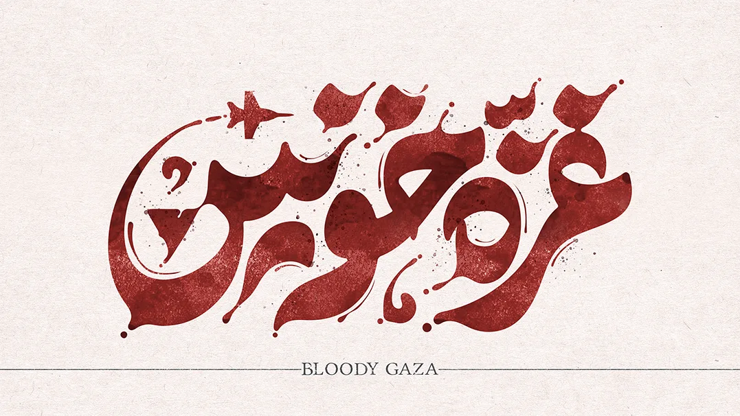طرح تایپوگرافی غزه خونین، ابتدا اتود آن به شکل دستی طراحی شده، سپس در فتوشاپ با استفاده از ابزار پینت به صورت برداری تکمیل شده، این تایپوگرافی به صورت لایه باز و قابل ویرایش و دانلود توسط کاربران می باشد.