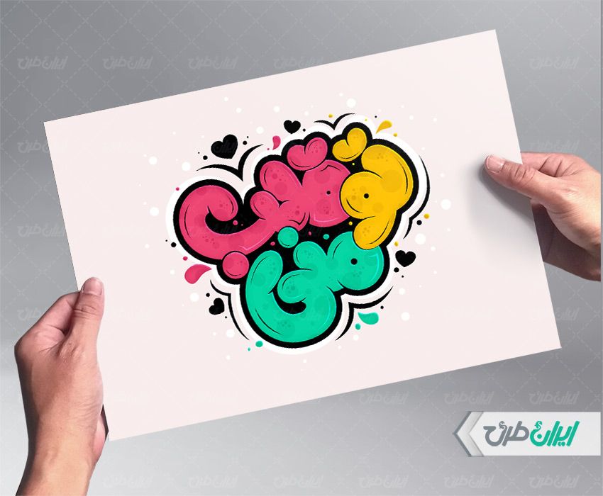 طرح تایپوگرافی تو قلب منی ، ابتدا اتود آن به شکل دستی طراحی شده، سپس در فتوشاپ با استفاده از ابزار پینت به صورت برداری تکمیل شده، این تایپوگرافی به صورت لایه باز و قابل ویرایش و دانلود توسط کاربران می باشد.