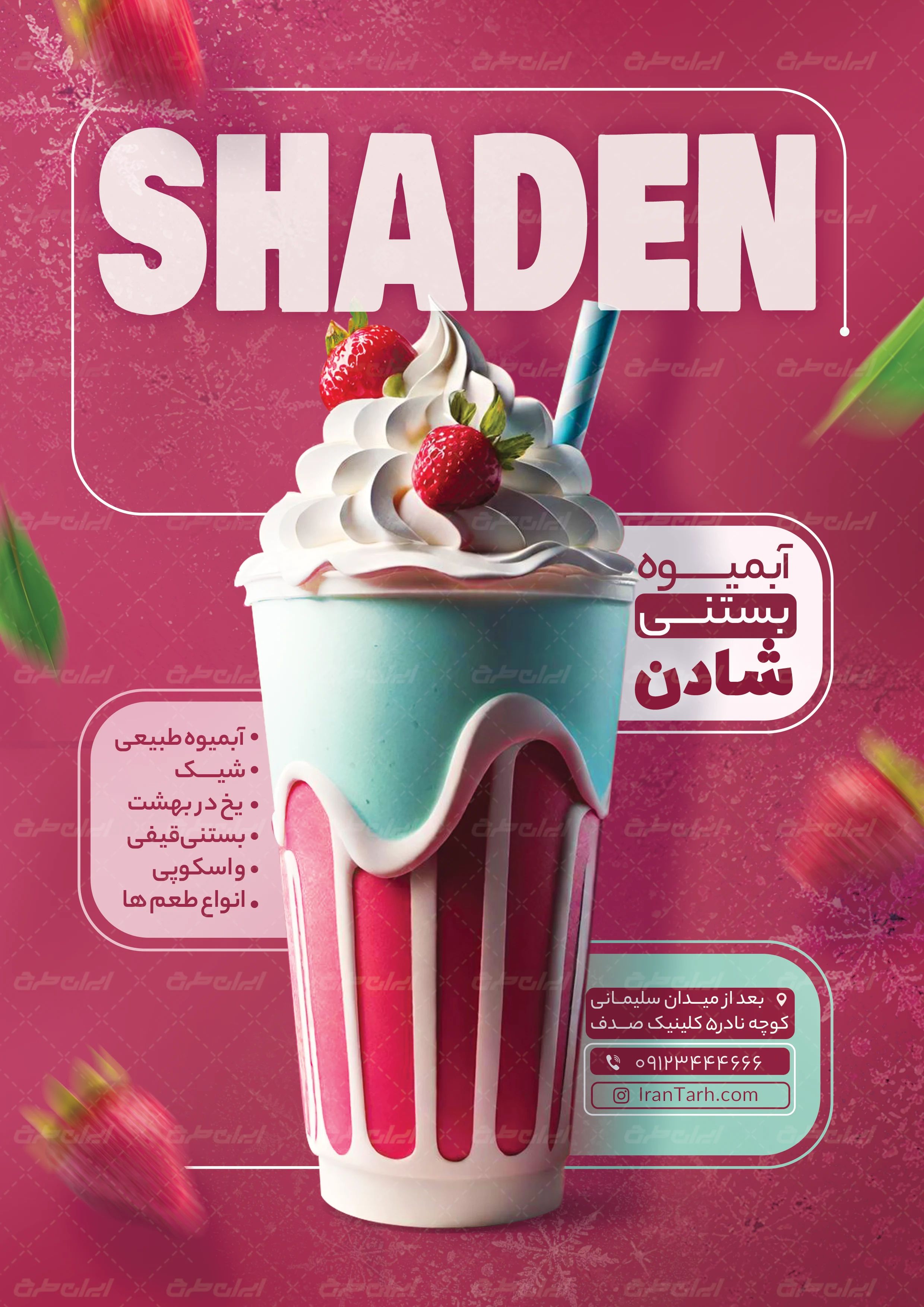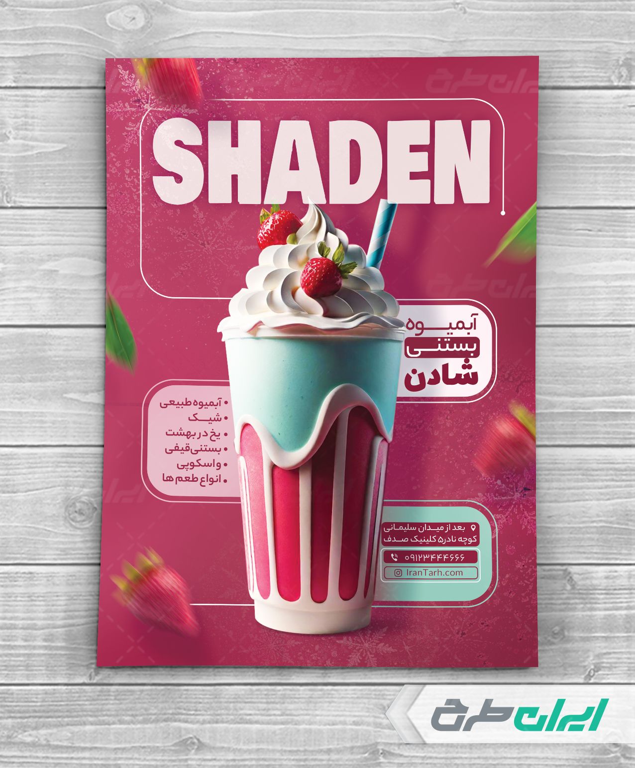 طرح تراکت آبمیوه سرا، جهت بازاریابی و تبلیغات این دسته از مغازه ها توسط تیم طراحان ایران طرح طراحی و در دسترس کاربران سایت قرار گرفته است.