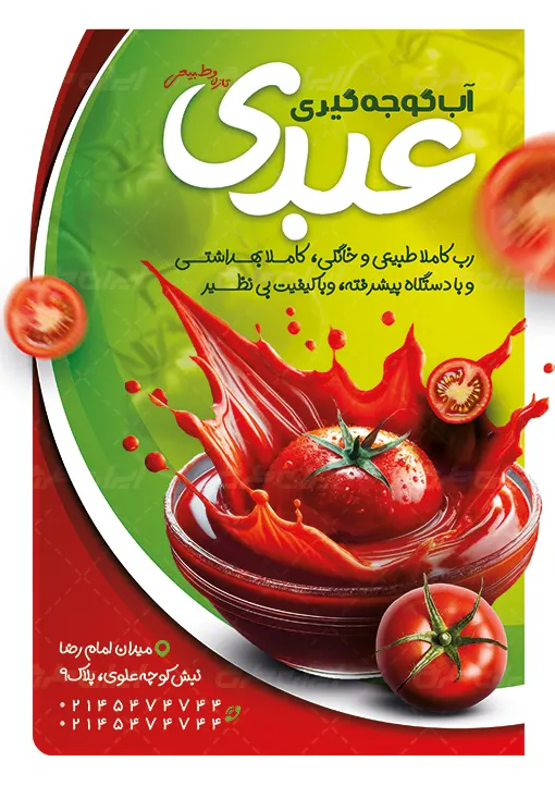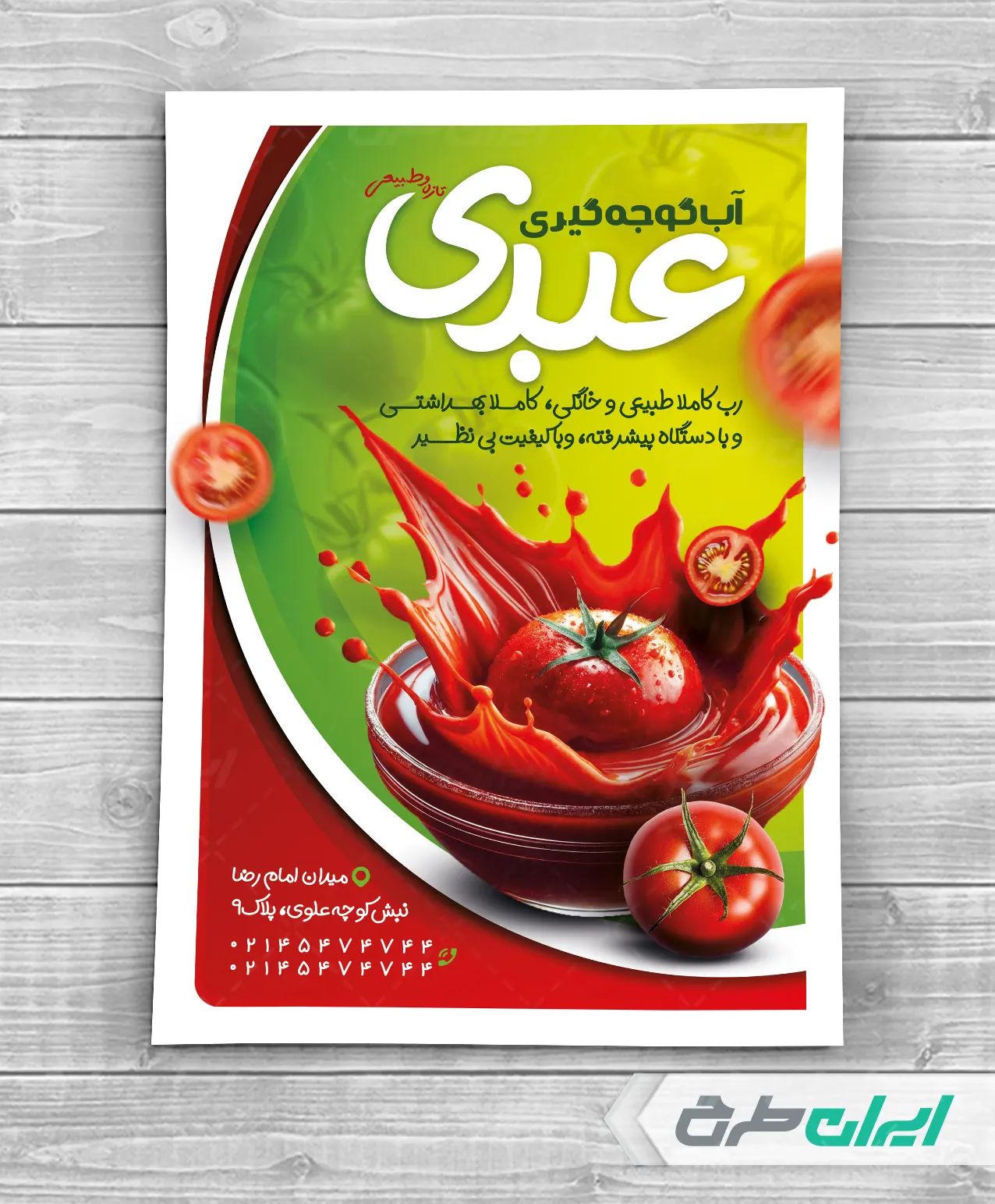 - طراحی ساده و کاربردی تراکت آب گوجه گیری