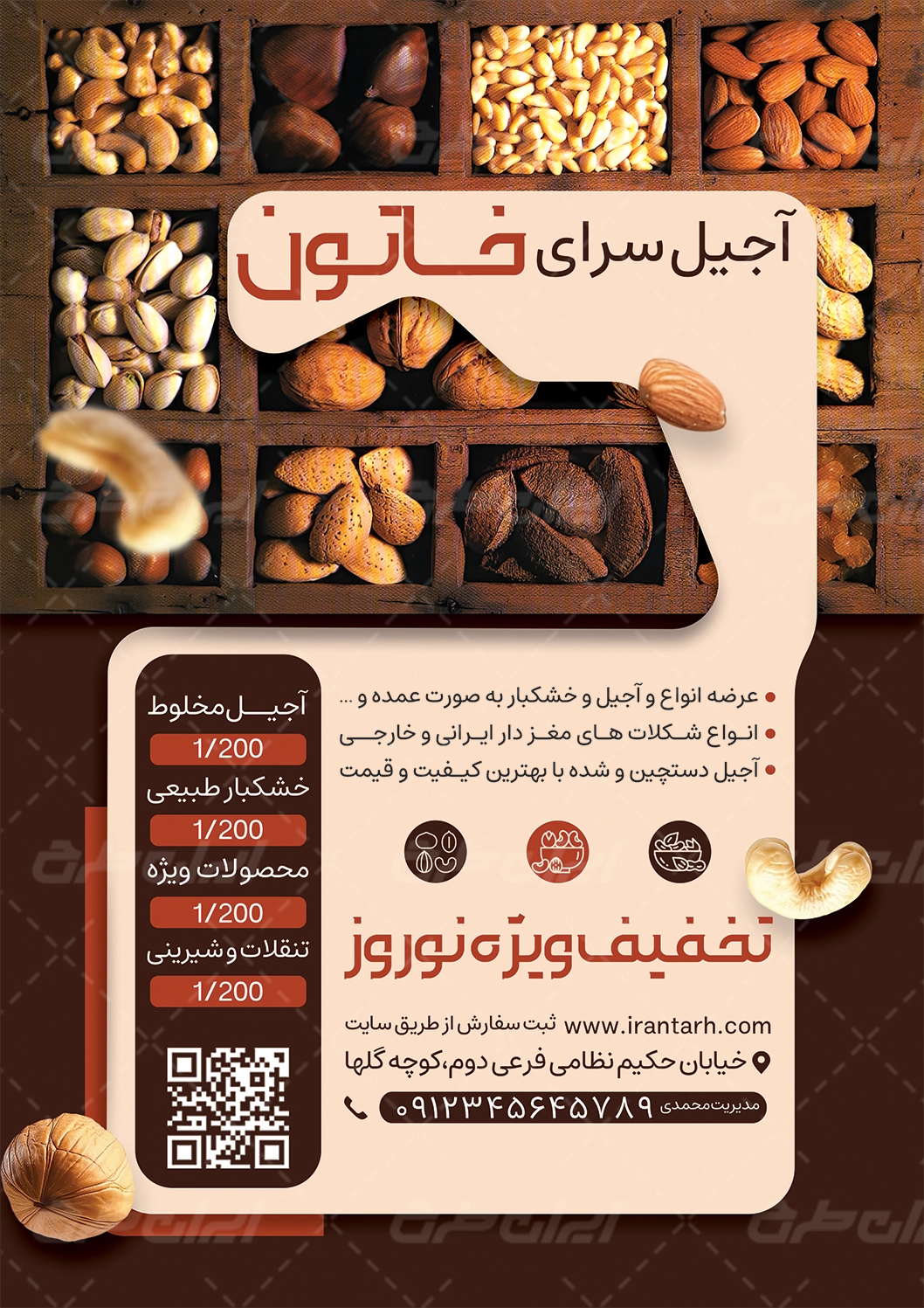 طرح تراکت فروشگاه آجیل و خشکبار شامل:
