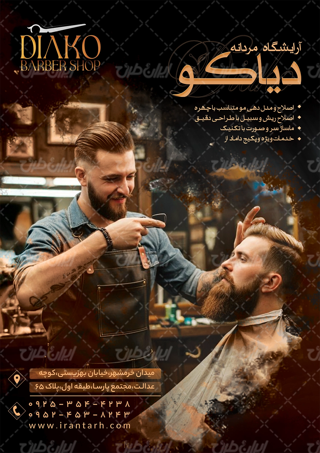 طرح لایه باز تراکت آرایشگاه مردانه شامل: