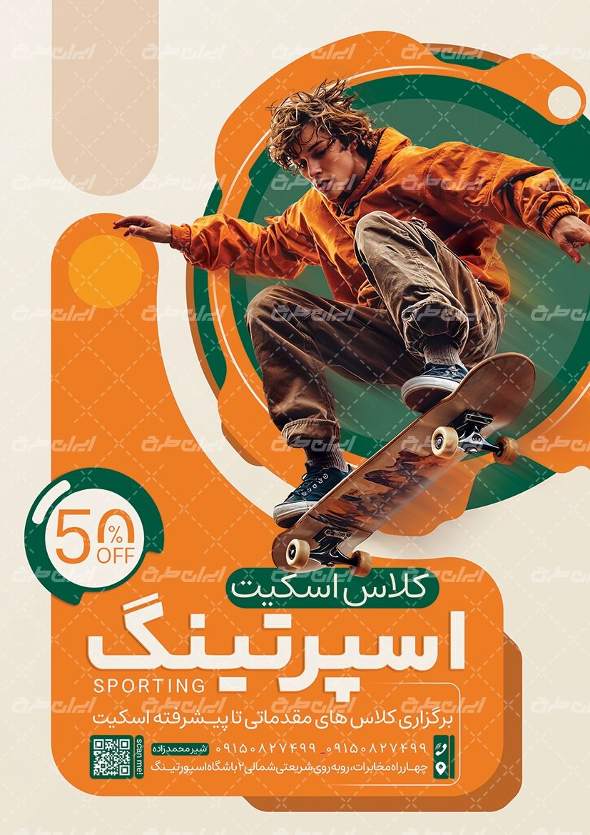 طرح تراکت لایه باز آموزشگاه اسکیت، جهت بازاریابی و تبلیغات این آموزشگاه ها توسط ایران طرح طراحی و در اختیار کاربران سایت قرار گرفته است.