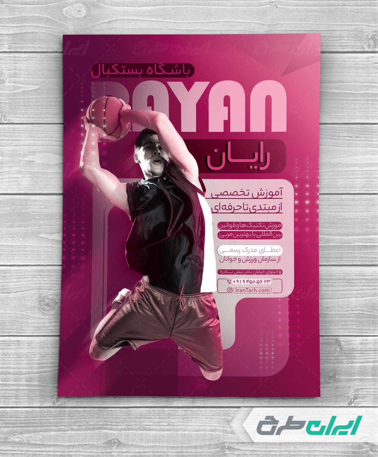 طرح تراکت آموزشگاه بسکتبال شامل: