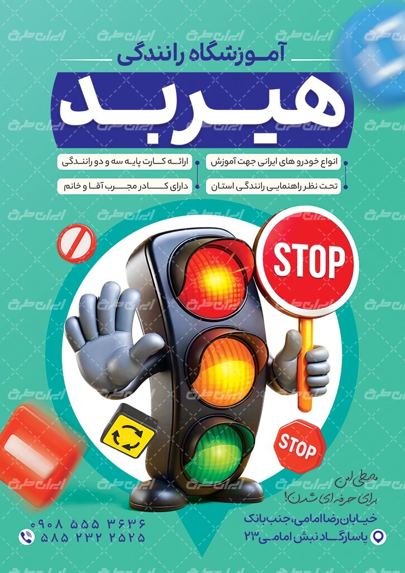 طرح تراکت لایه باز آموزشگاه رانندگی ، توسط تیم مجرب ایران طرح جهت تبلیغات و بازاریابی این دسته از مشاغل طراحی و در دسترس کاربران سایت قرار گرفته است.