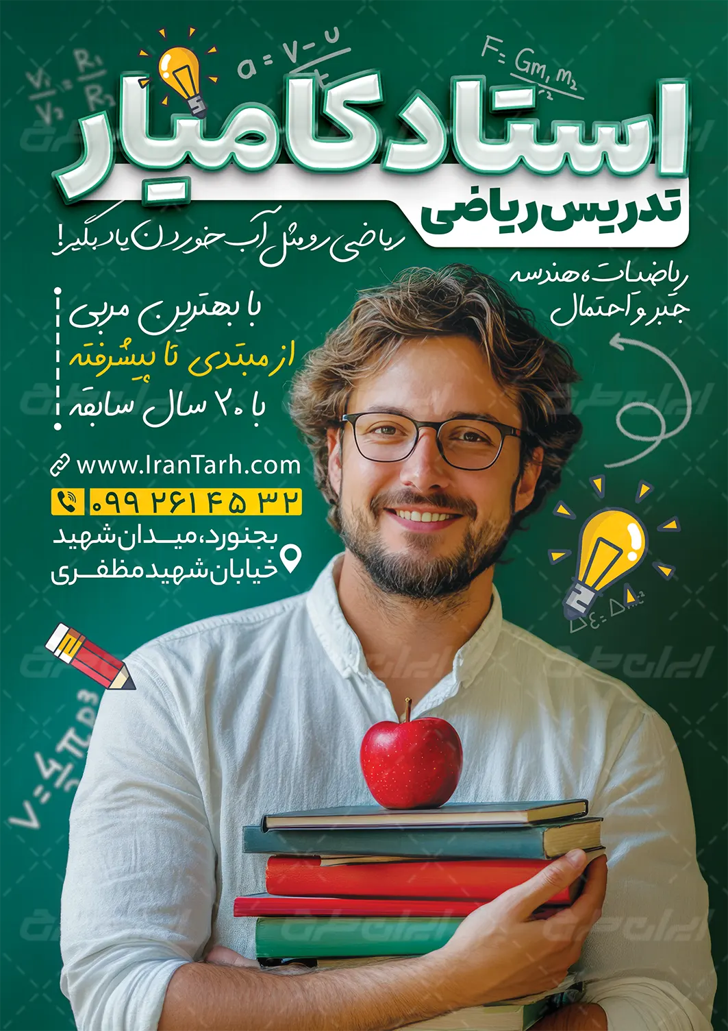 - استفاده مناسب از عکس باکیفیت معلم در طرح تراکت آموزشگاه ریاضی