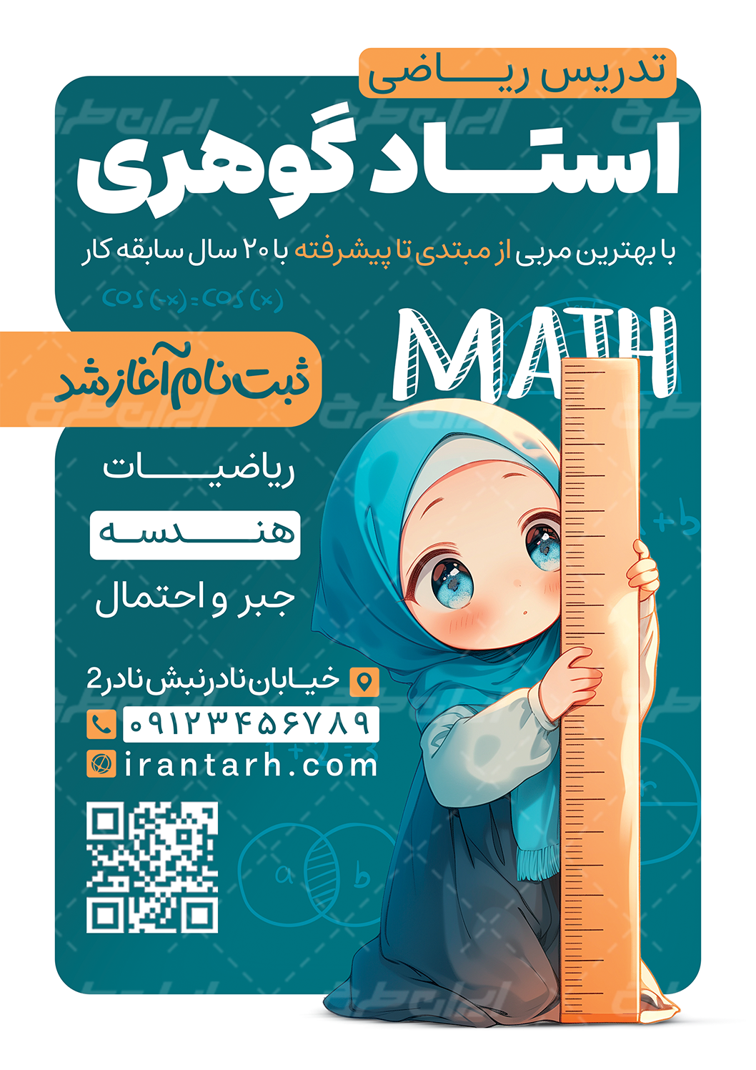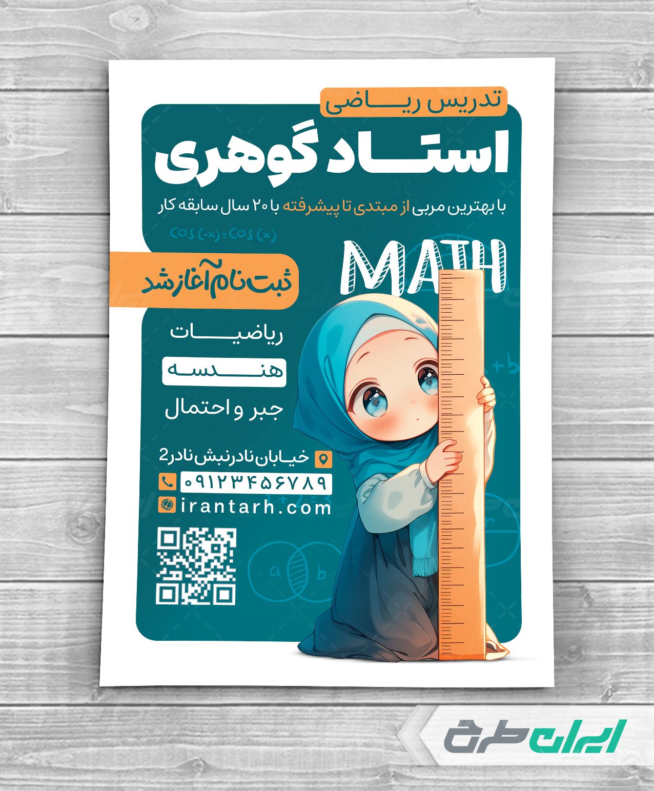 طرح تراکت لایه باز آموزشگاه ریاضی، جهت تبلیغات این آموزشگاه ها توسط طراحان ایران طرح طراحی و در دسترس کاربران سایت قرار گرفته است.