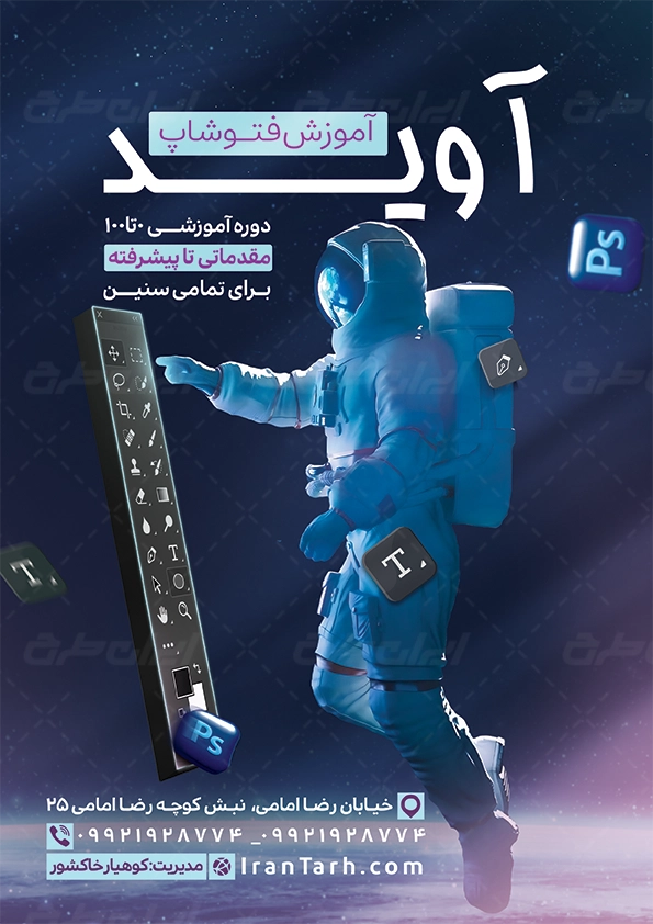 - استفاده مناسب از تصویر نرم افزار فتوشاپ که مناسب طرح تراکت لایه باز آموزشگاه فتوشاپ می باشد.