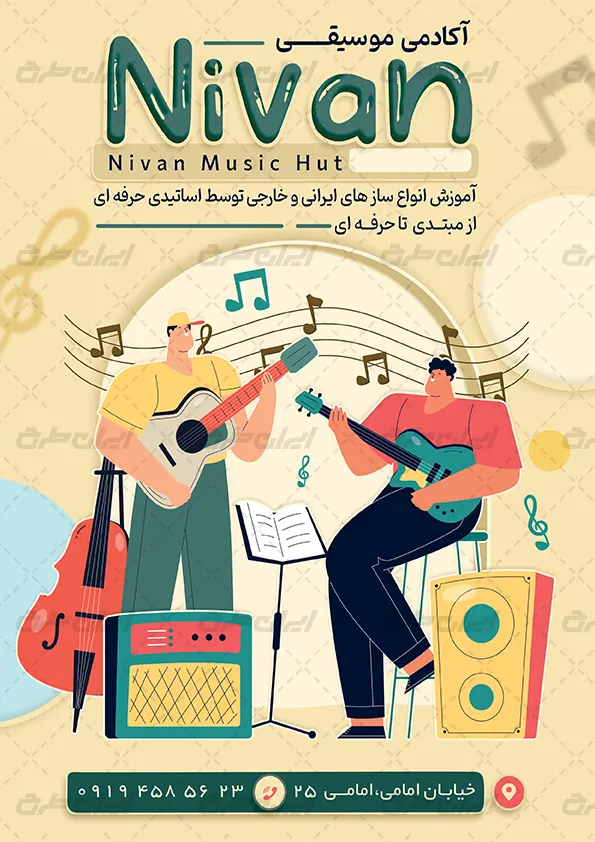 طرح تراکت آموزشگاه موسیقی شامل:
