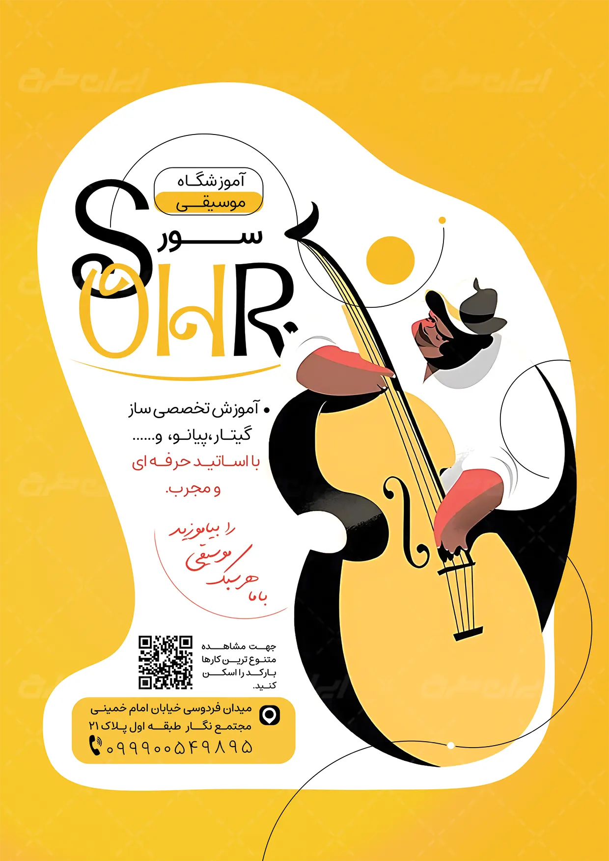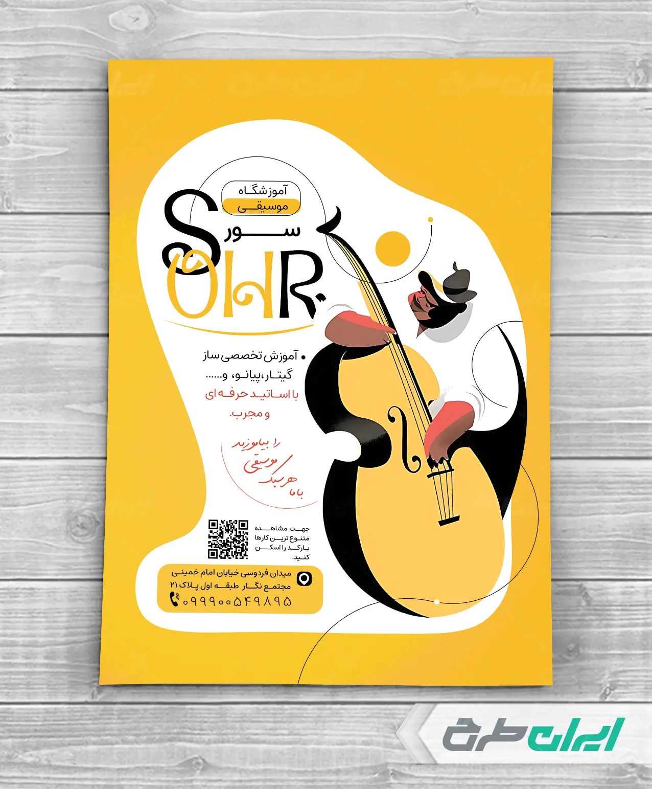 طرح تراکت لایه باز آموزشگاه موسیقی، جهت تبلیغات این آموزشگاه ها توسط طراحان ایران طرح طراحی و در دسترس کاربران سایت قرار گرفته است.