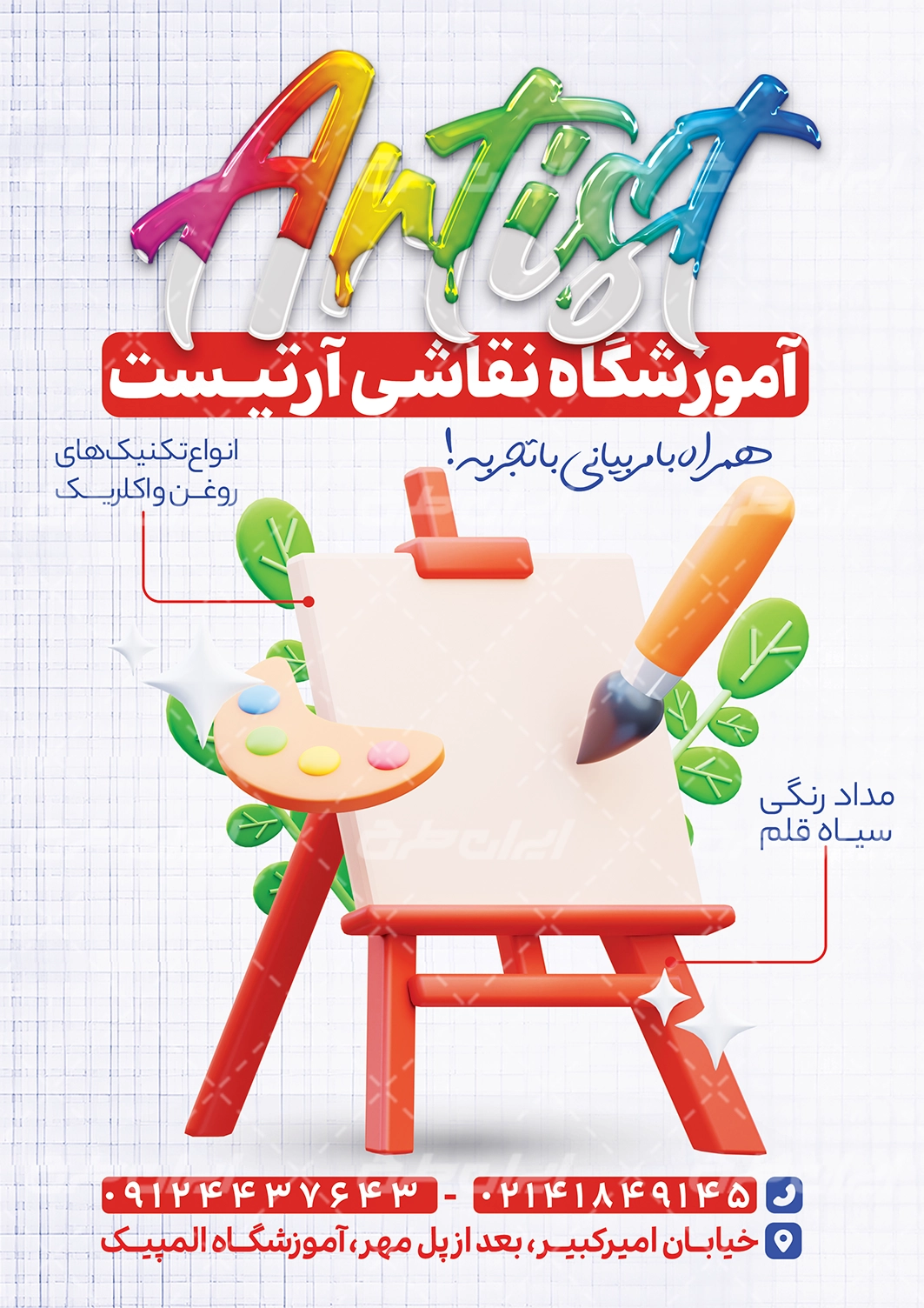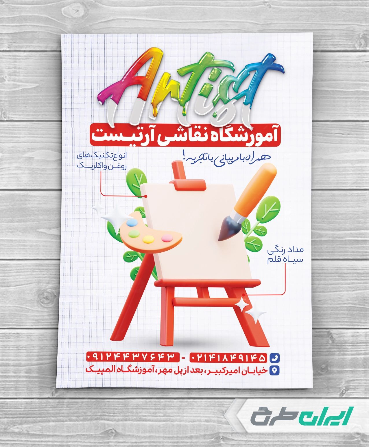 طرح تراکت آموزشگاه نقاشی، توسط تیم مجرب ایران طرح جهت تبلیغات و بازاریابی این دسته از آموزشگاه ها طراحی و در دسترس کاربران سایت قرار گرفته است.
