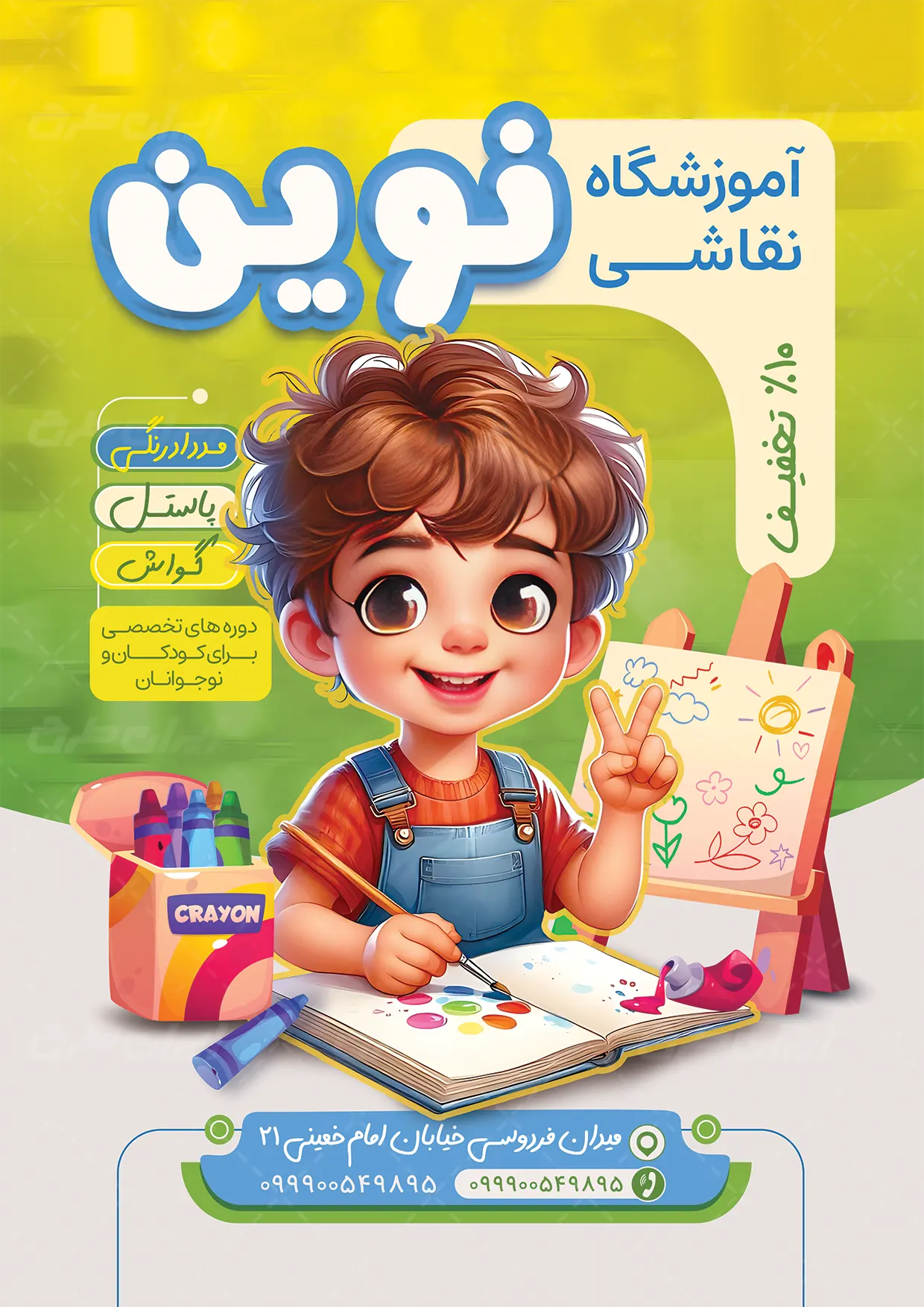 طرح تراکت آموزشگاه نقاشی شامل: