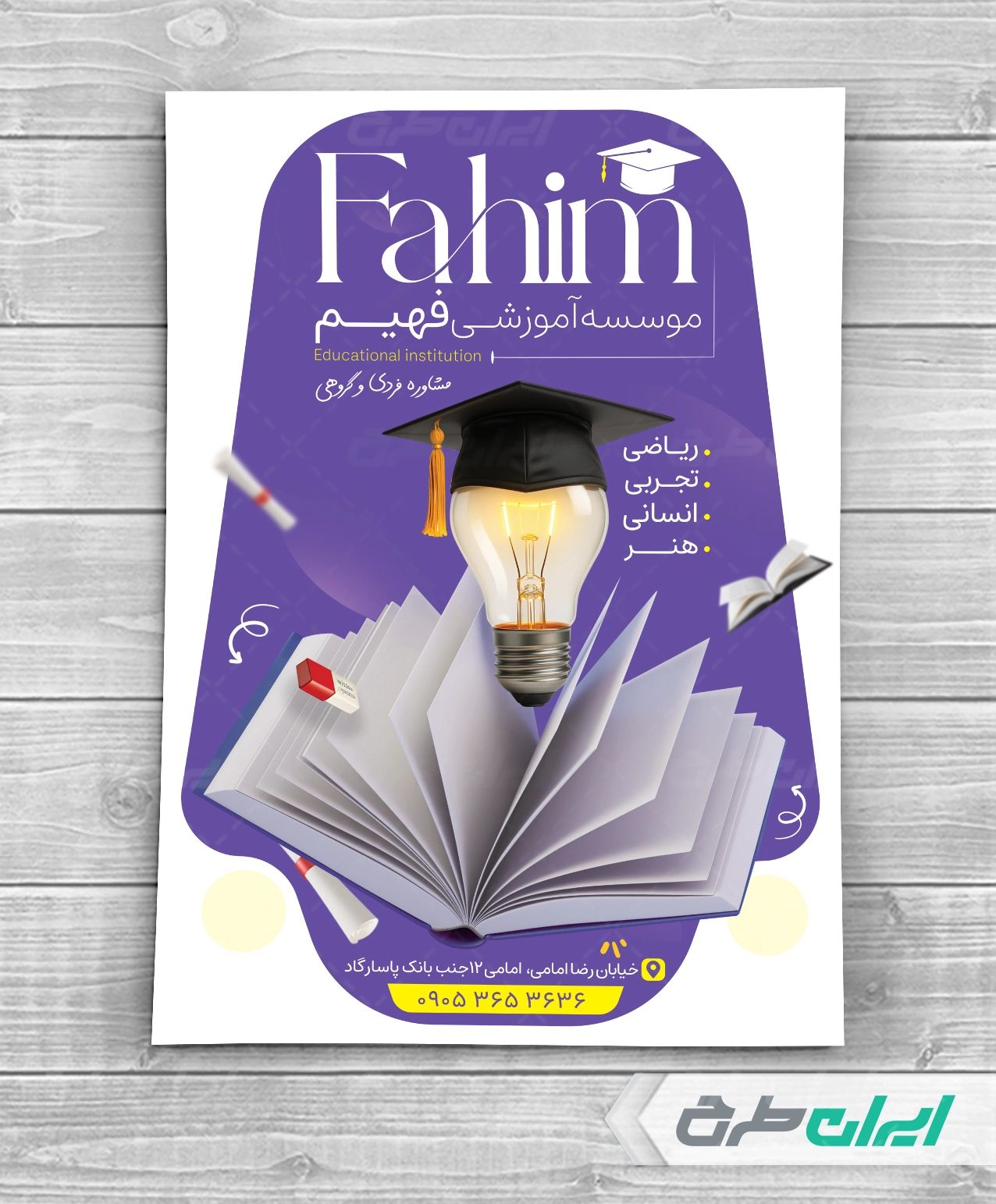 طرح تراکت آموزشگاه علمی و کلاس درسی، جهت تبلیغات این آموزشگاه ها توسط طراحان ایران طرح طراحی و در دسترس کاربران سایت قرار گرفته است.