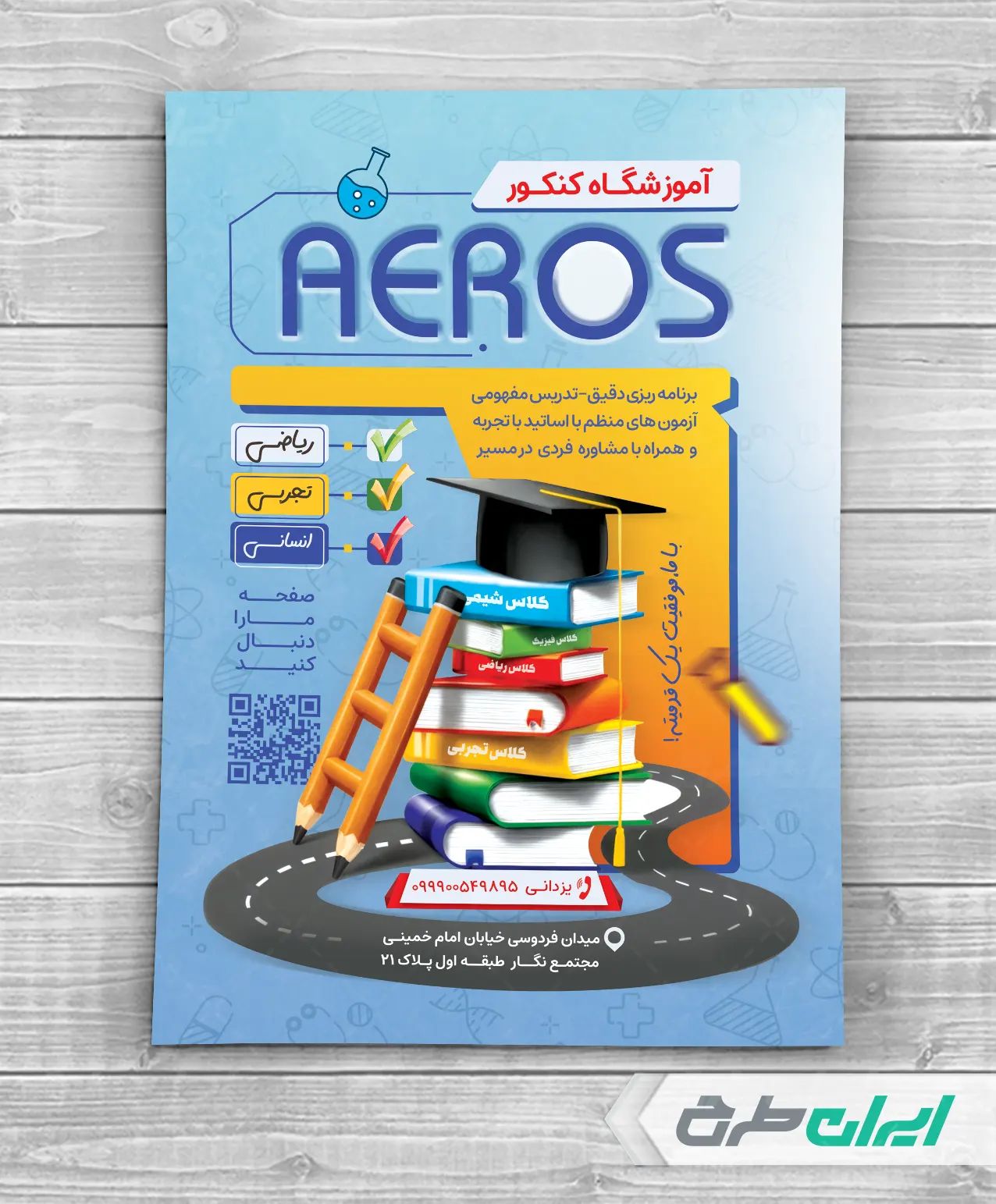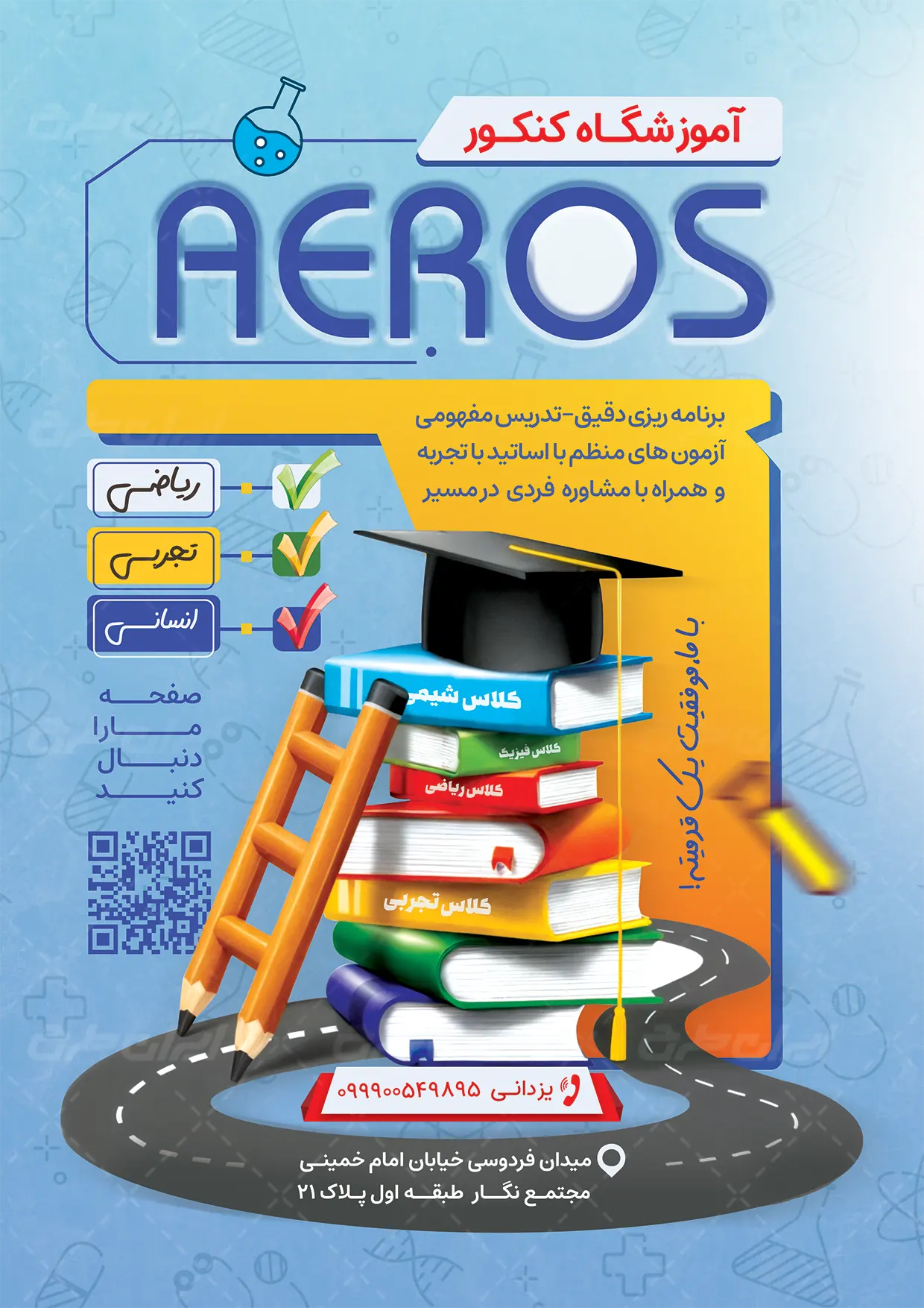 - استفاده مناسب از عکس با کیفیت کتاب در طرح تراکت کلاس های درسی کنکور