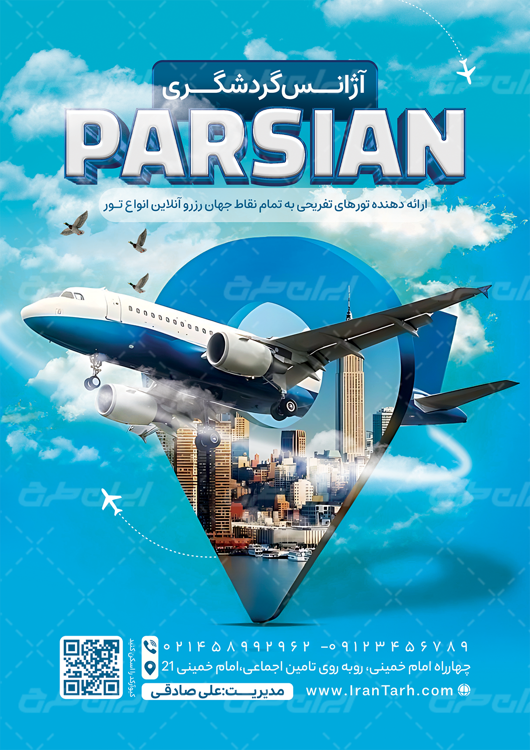 در نهایت، طراحی تراکت باید بهگونهای باشد که هم جذاب و هم حرفهای به نظر برسد. ترکیب رنگ آبی با تصاویر هوایی، متنهای جذاب و اطلاعات تماس دقیق، همگی در کنار هم باعث میشود که تراکت آژانس گردشگری نه تنها توجه مشتریان جدید را جلب کند، بلکه تصویر مثبت و حرفهای از آژانس در ذهن مخاطب باقی بگذارد. این طرح میتواند به آژانس کمک کند تا در بازار رقابتی گردشگری متمایز شده و مشتریان وفادار بیشتری جذب کند.