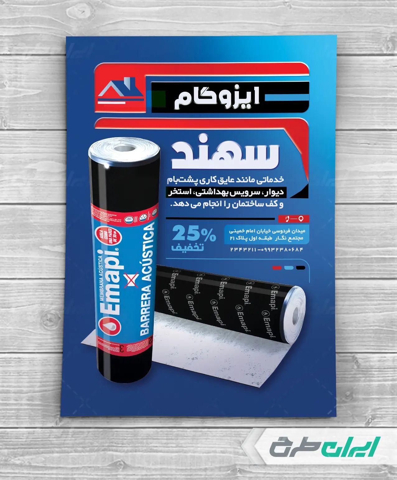 طرح تراکت ایزوگام جهت استفاده این دسته از مشاغل توسط طراحان ایران طرح طراحی، و در دسترس کاربران سایت قرار گرفته است.