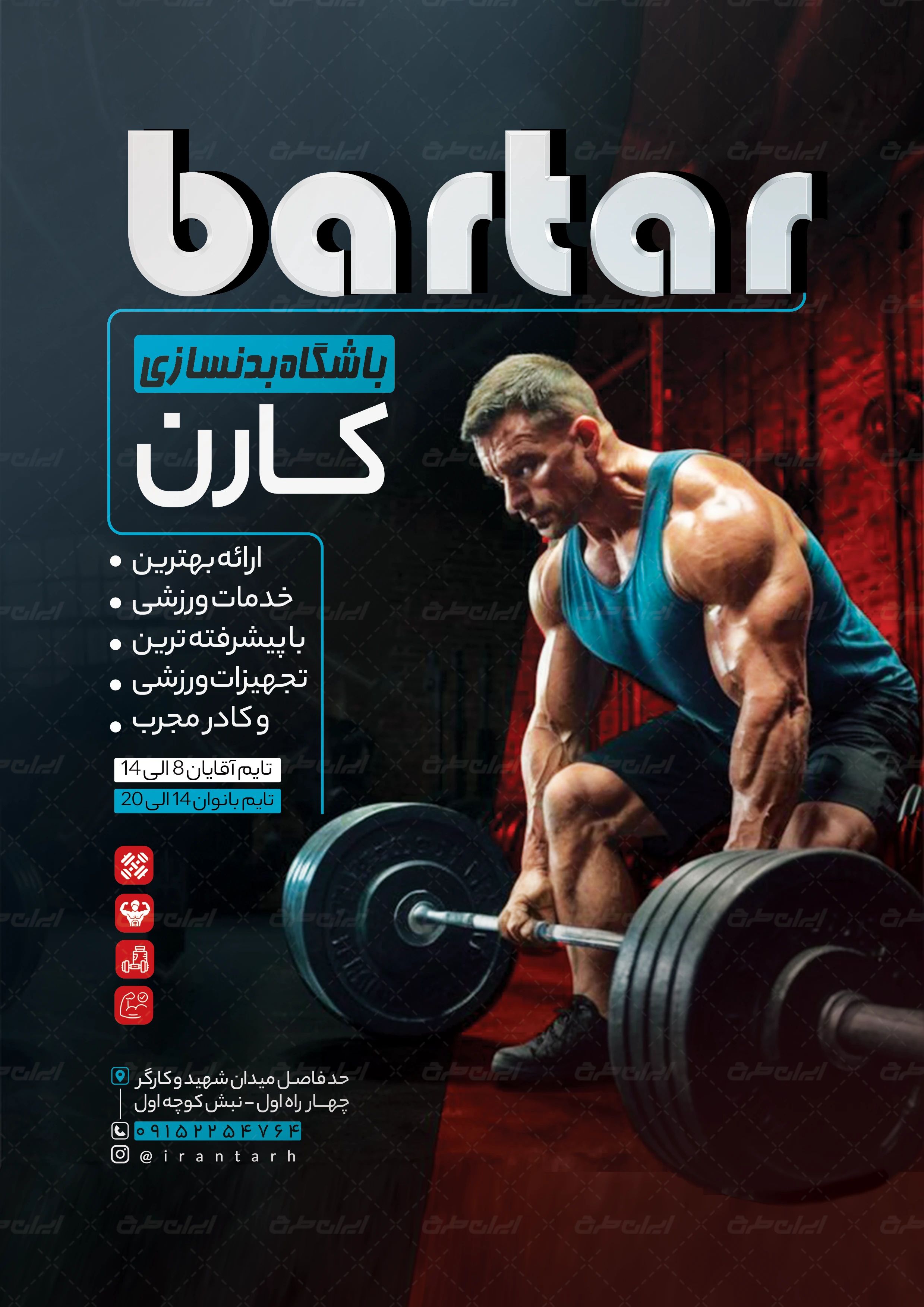 تراکت باشگاه بدنسازی، توسط تیم ایران طرح جهت تبلیغات و بازاریابی این مشاغل طراحی و در دسترس کاربران سایت قرار گرفته است.