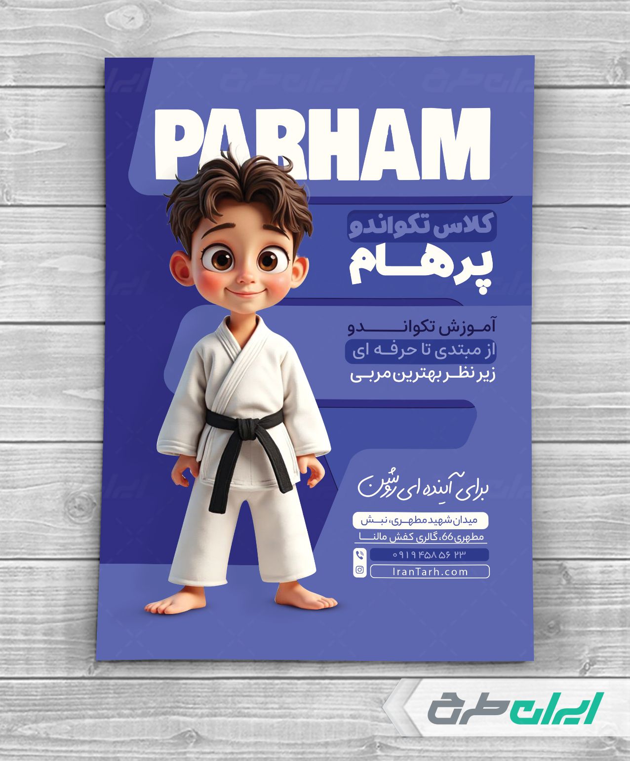 طرح تراکت لایه باز باشگاه تکواندو، جهت بازاریابی و تبلیغات این دسته از مشاغل توسط ایران طرح طراحی و در اختیار کاربران سایت قرار گرفته است.