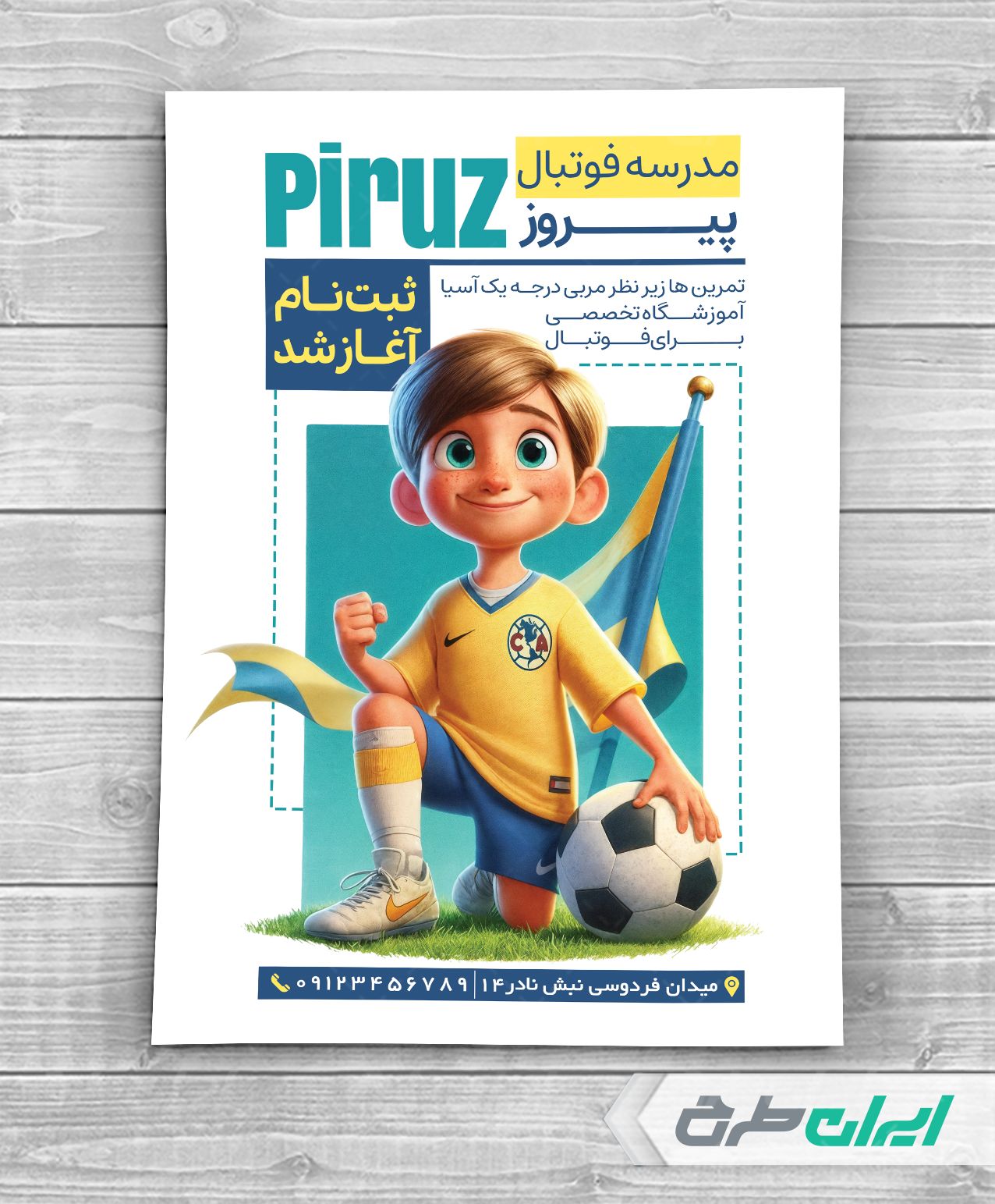 طرح تراکت لایه باز مدرسه فوتبال، جهت بازاریابی و تبلیغات این کلاس ها توسط ایران طرح طراحی و در اختیار کاربران سایت قرار گرفته است.