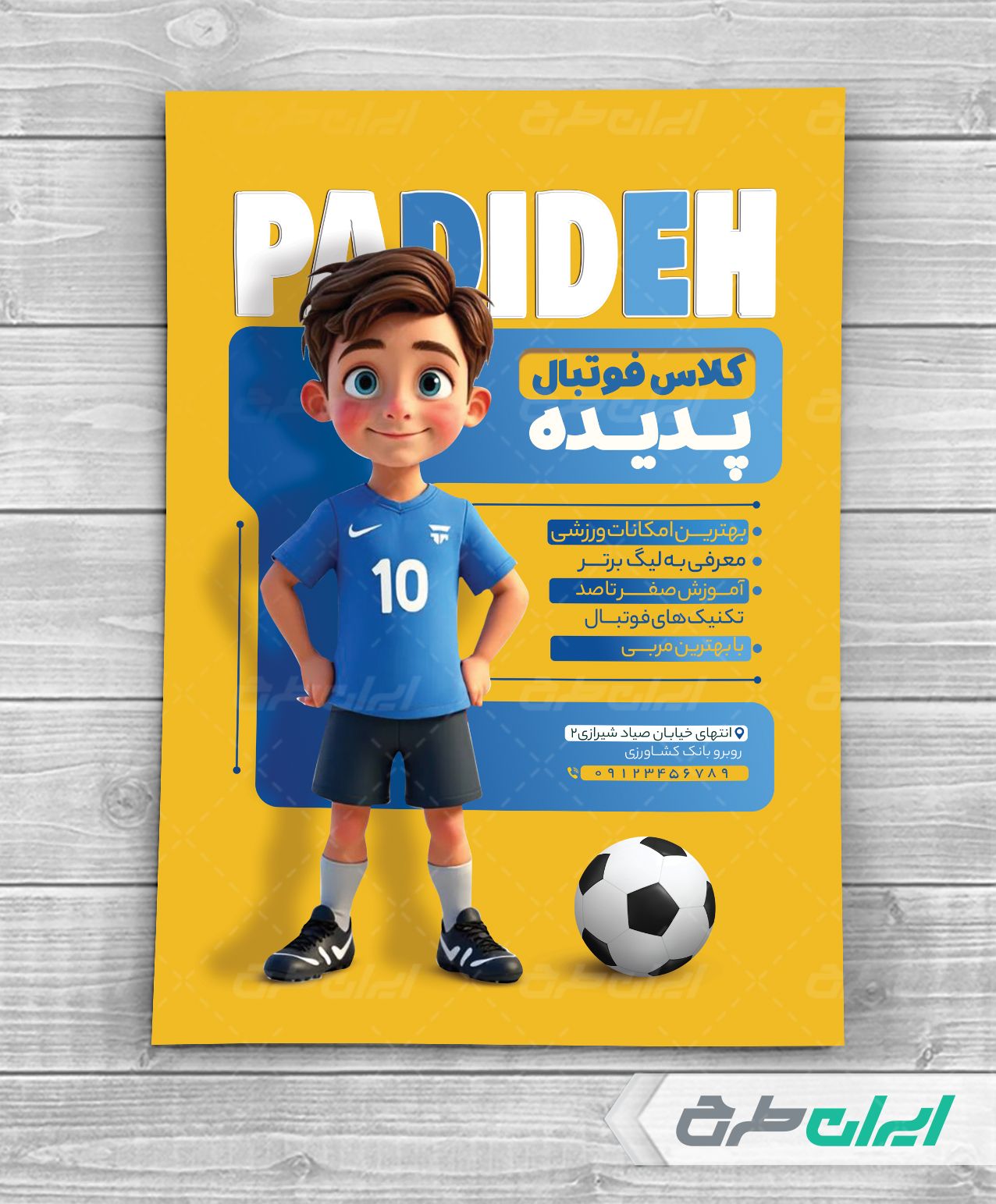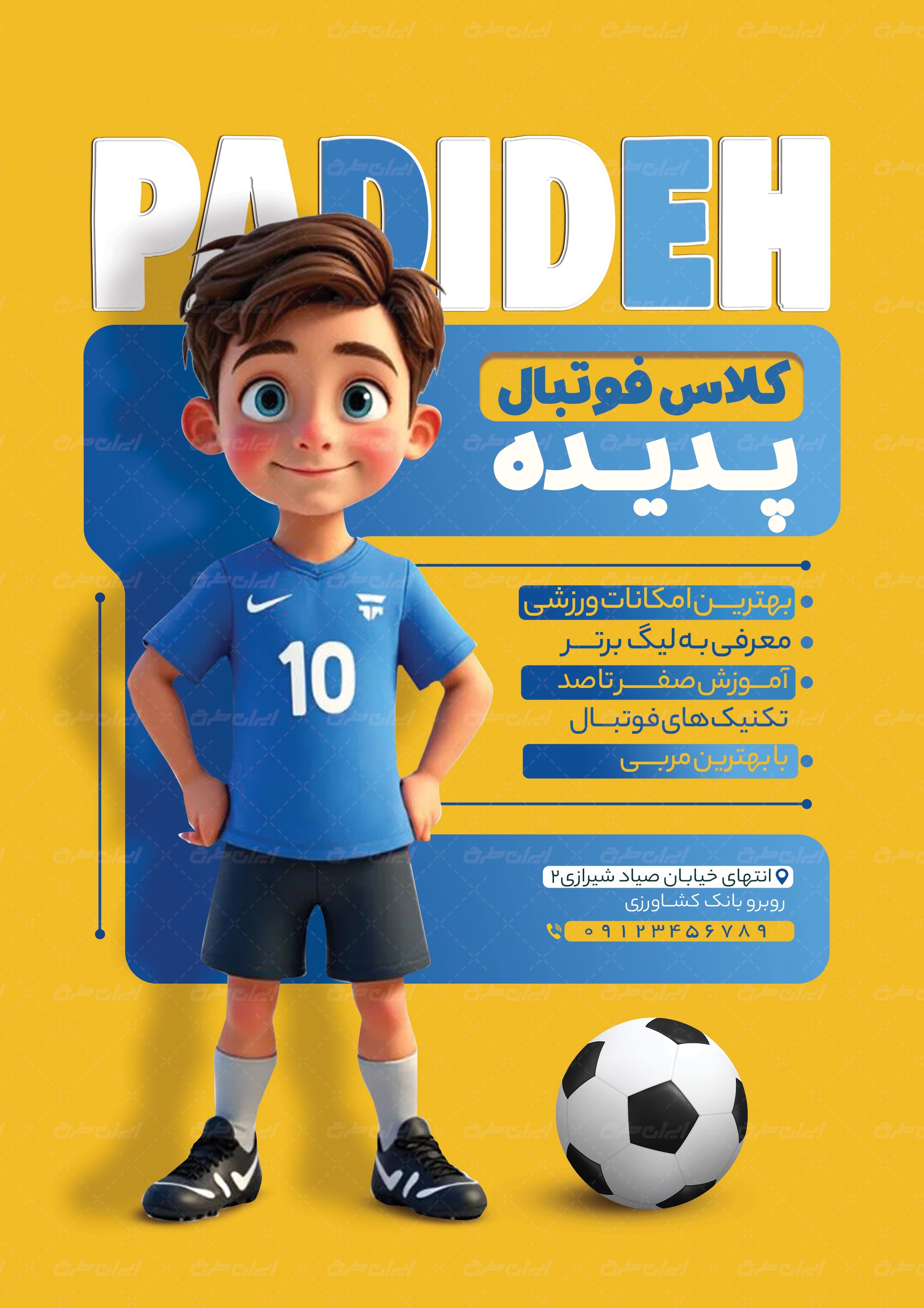 طرح تراکت لایه باز مدرسه فوتبال، جهت بازاریابی و تبلیغات این کلاس ها توسط ایران طرح طراحی و در اختیار کاربران سایت قرار گرفته است.
