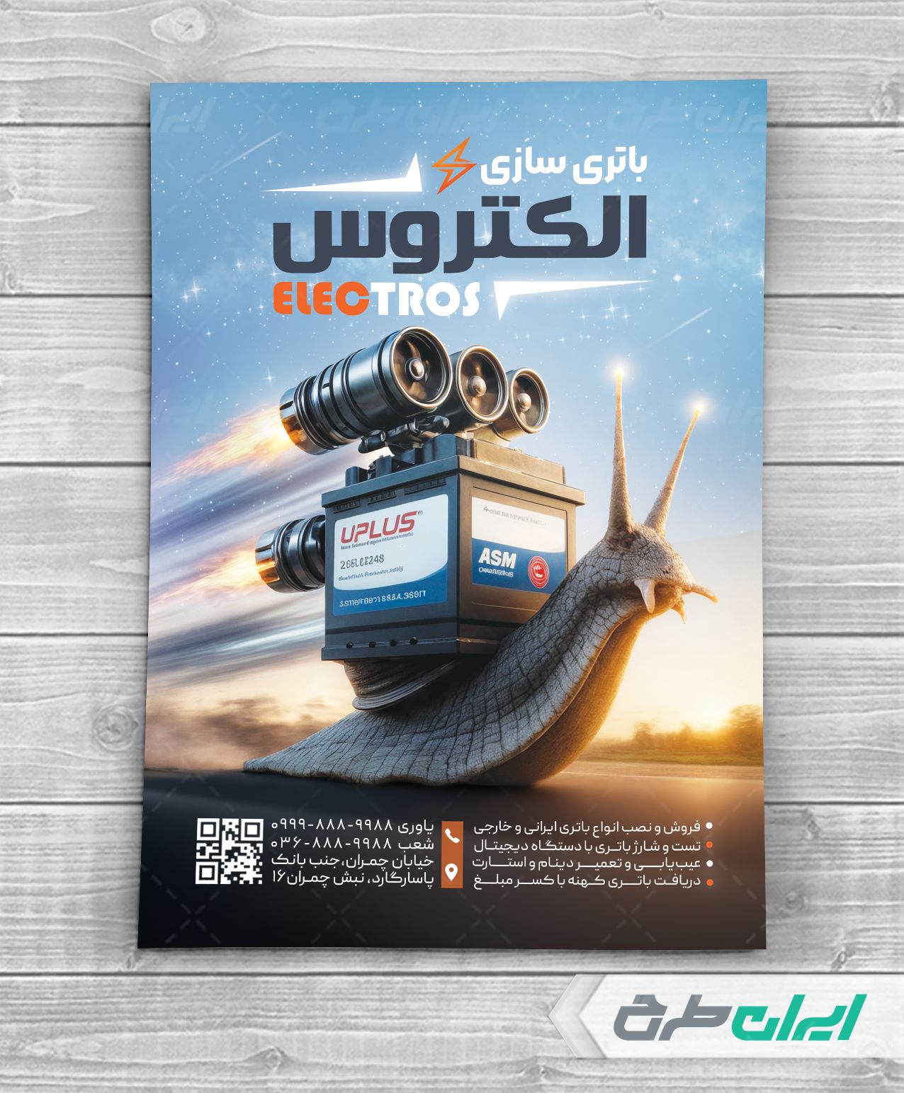 طرح لایه باز تراکت باطری سازی توسط تیم طراحان مجرب ایران طرح جهت تبلیغات و بازاریابی این شغل طراحی، و در دسترس کاربران سایت قرار گرفته است.
