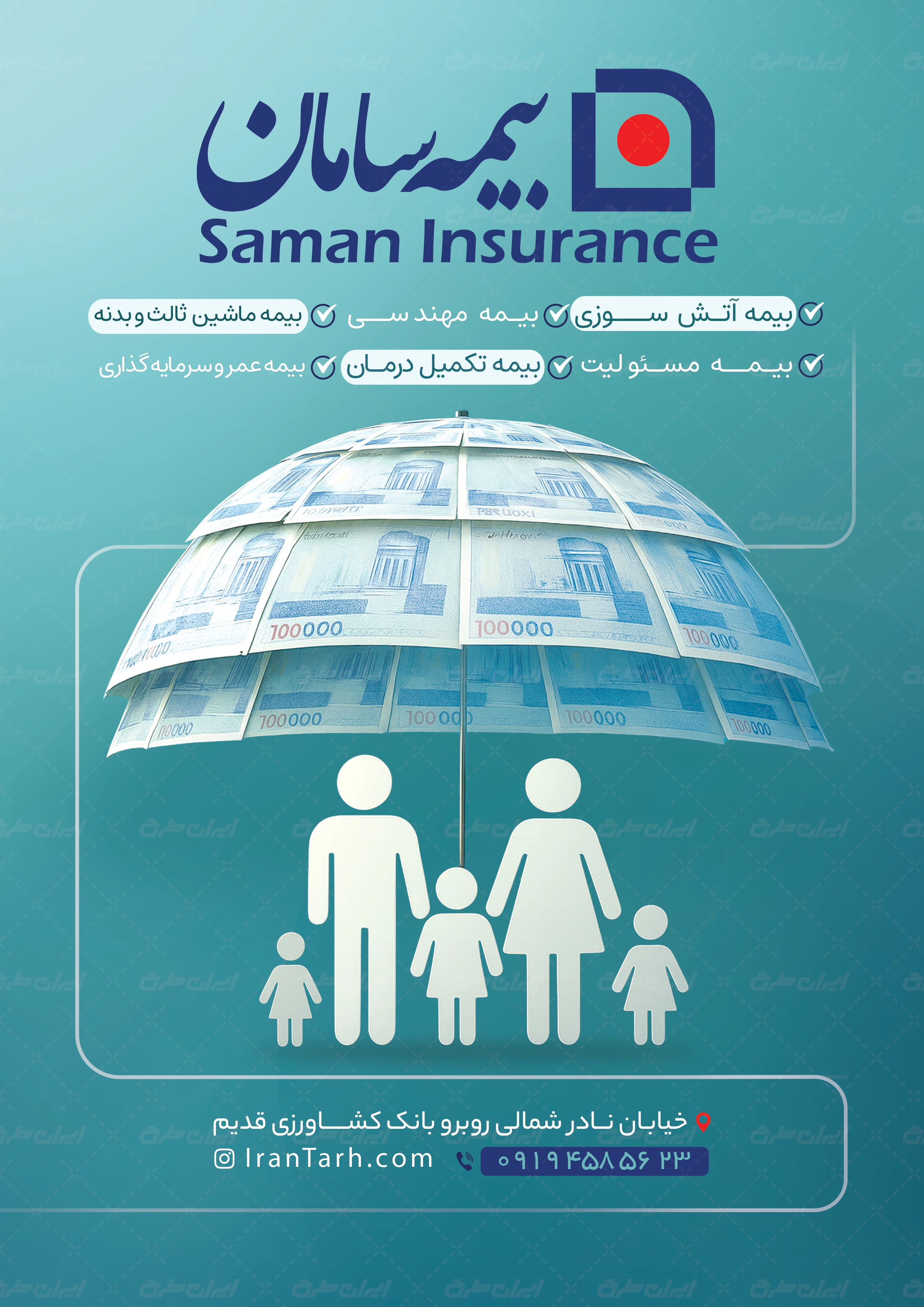 طرح تراکت بیمه سامان توسط تیم ایران طرح برای استفاده و تبلیغات این نهاد ها طراحی شده است.