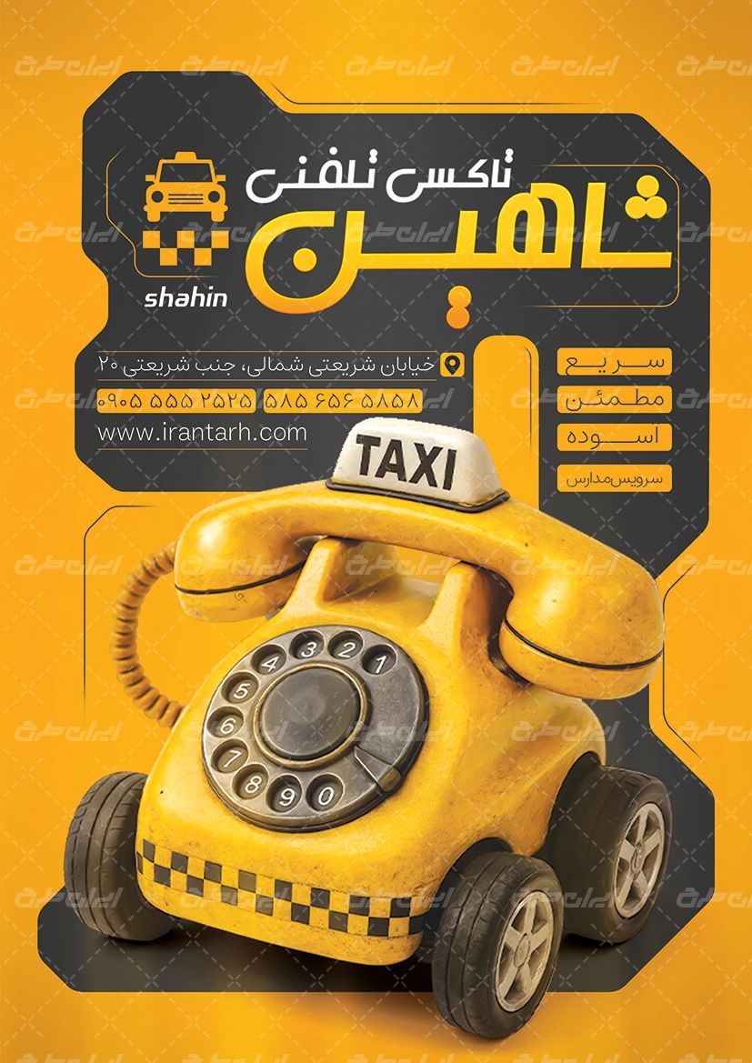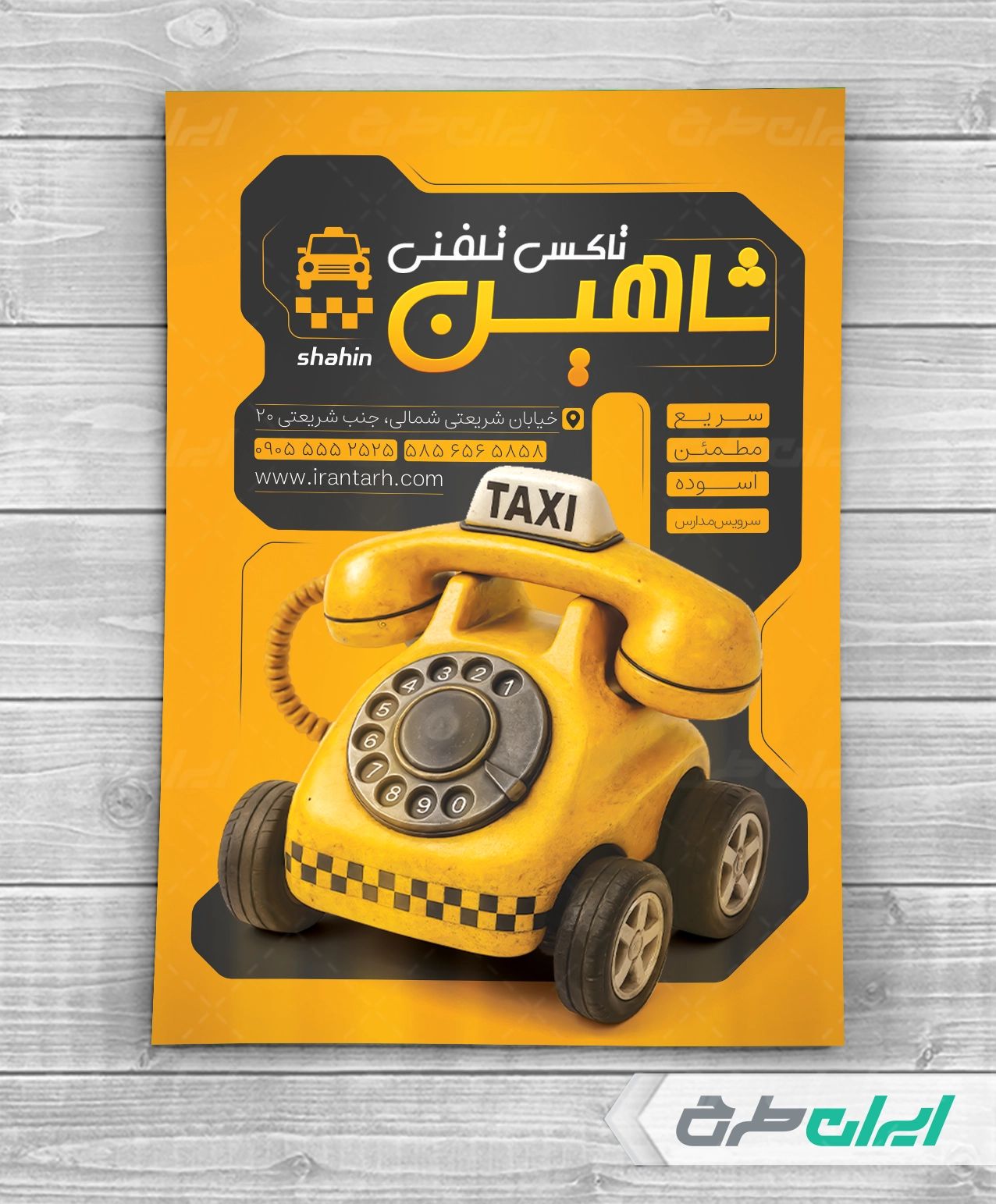 طرح تراکت لایه باز تاکسی تلفنی، جهت بازاریابی و تبلیغات این دسته از مشاغل توسط تیم طراحان ایران طرح طراحی و در دسترس کاربران سایت قرار گرفته است.