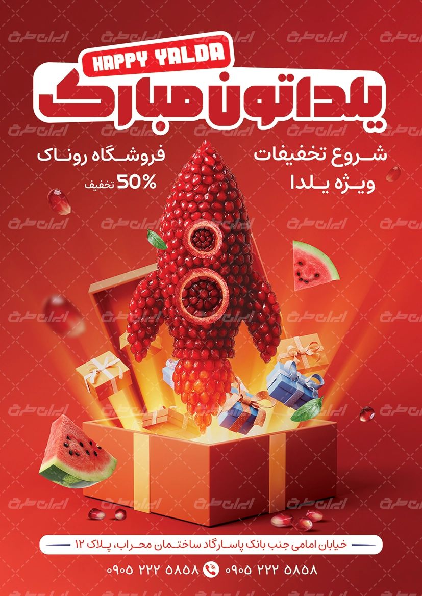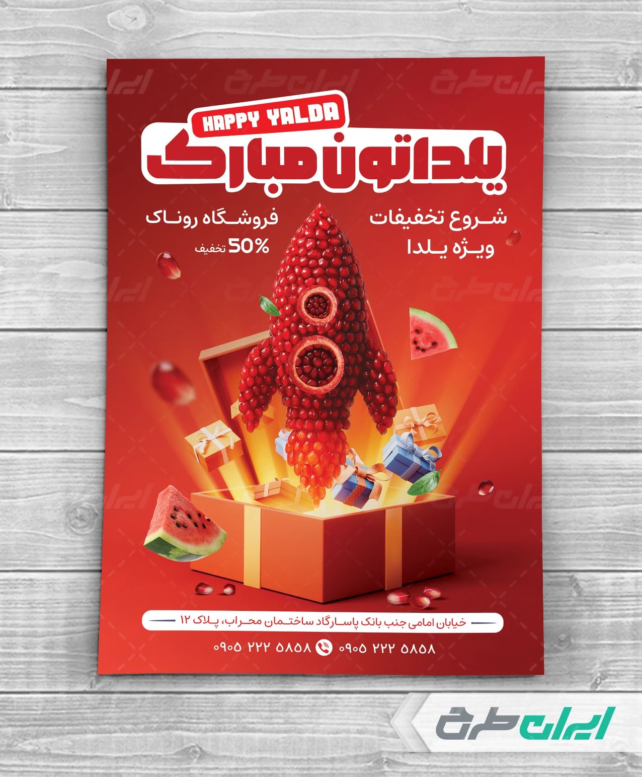 ایران طرح طرح تراکت تخفیف یلدا را جهت تبلیغات و بازاریابی این فروشگاه ها، طراحی و در دسترس کاربران سایت قرار داده است.
