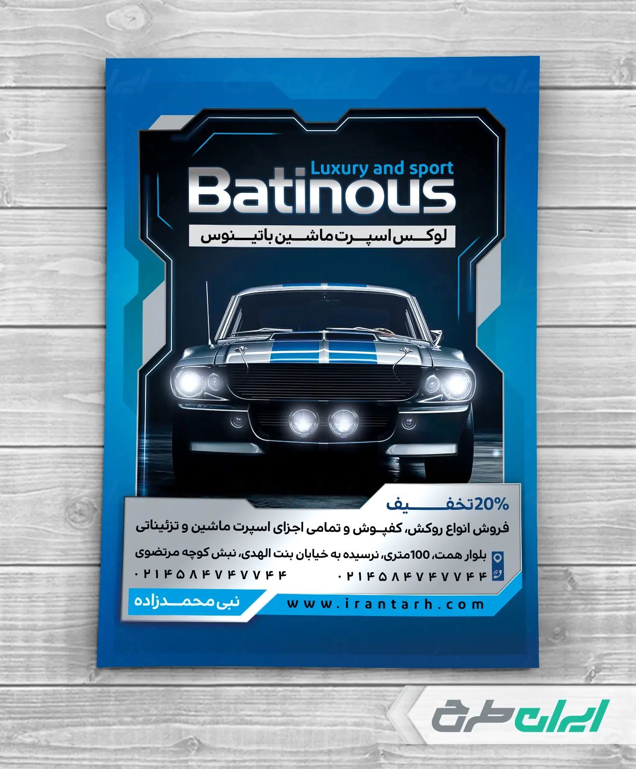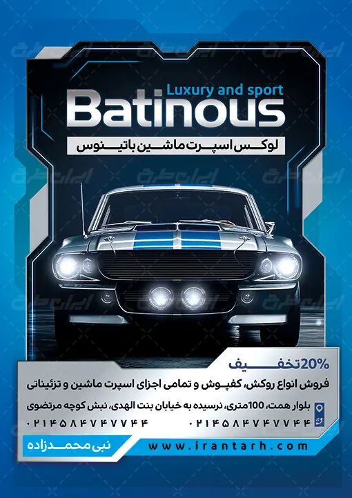 طرح تراکت تو دوزی و تزئینات خودرو جهت تبلیغات این دسته از فروشگاه ها توسط تیم ایران طرح طراحی شده است.