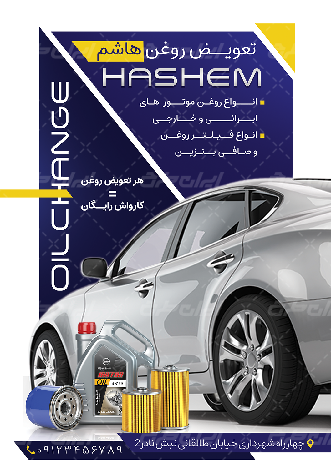 - استفاده از عکس با کیفیت ماشین که مناسب با طرح تراکت تعویض روغنی می باشد.
