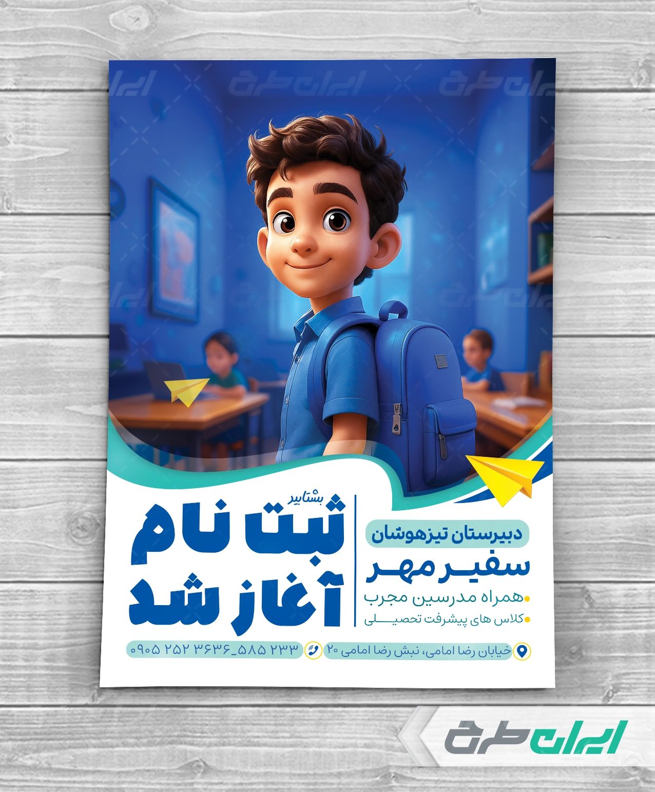 تیم ایران طرح طرح تراکت ثبت نام دبیرستان را برای بازاریابی و تبلیغات گسترده تر این شغل طراحی و در دسترس کاربران سایت قرار داده است.