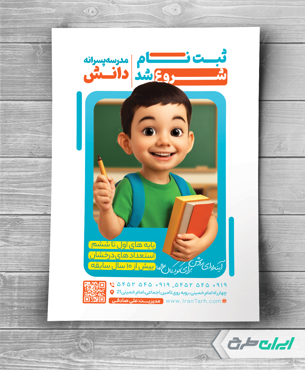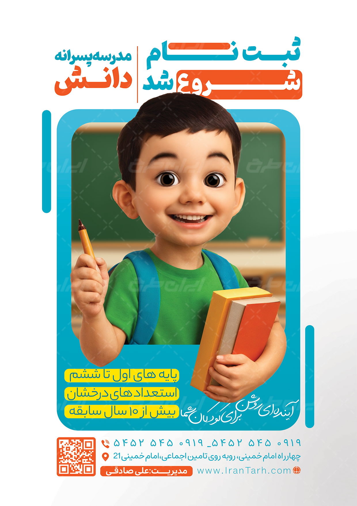 - استفاده از عکس باکیفیت دانش آموز در طراحی تراکت