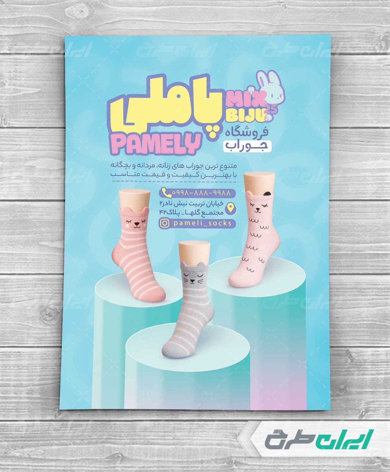 - طراحی شیک و کاربردی تراکت فروشگاه جوراب