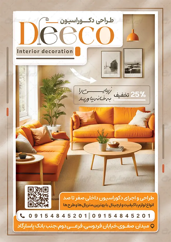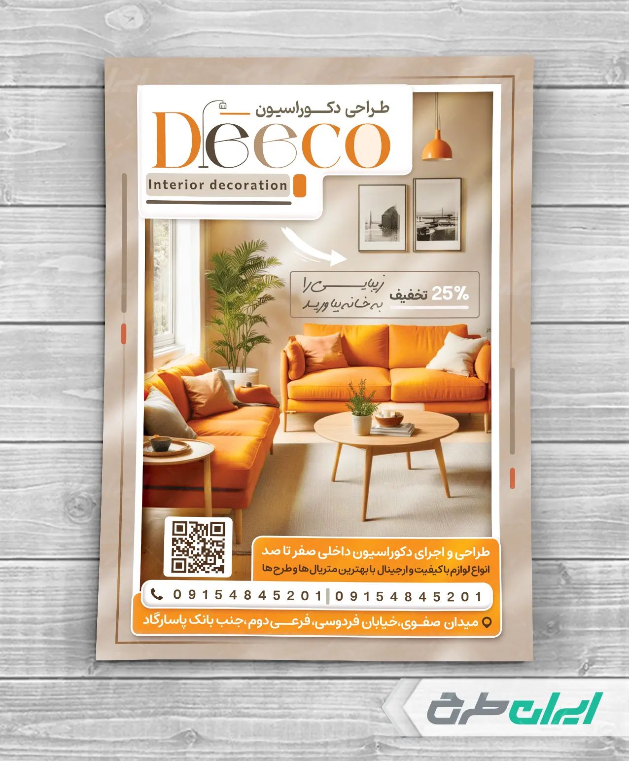 طرح تراکت لایه باز دکوراسیون داخلی، توسط تیم ایران طرح جهت تبلیغات و بازاریابی این مشاغل طراحی و در دسترس کاربران سایت قرار گرفته است.