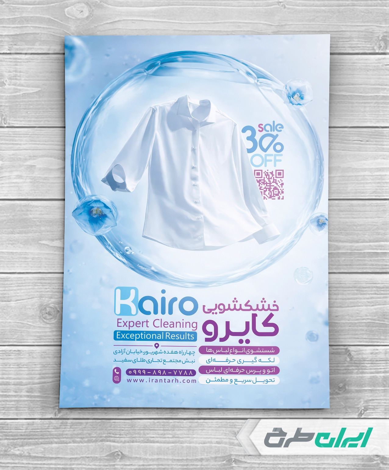 طرح تراکت خشکشویی، جهت بازاریابی و تبلیغات این دسته از مشاغل توسط تیم طراحان ایران طرح طراحی و در دسترس کاربران سایت قرار گرفته است.