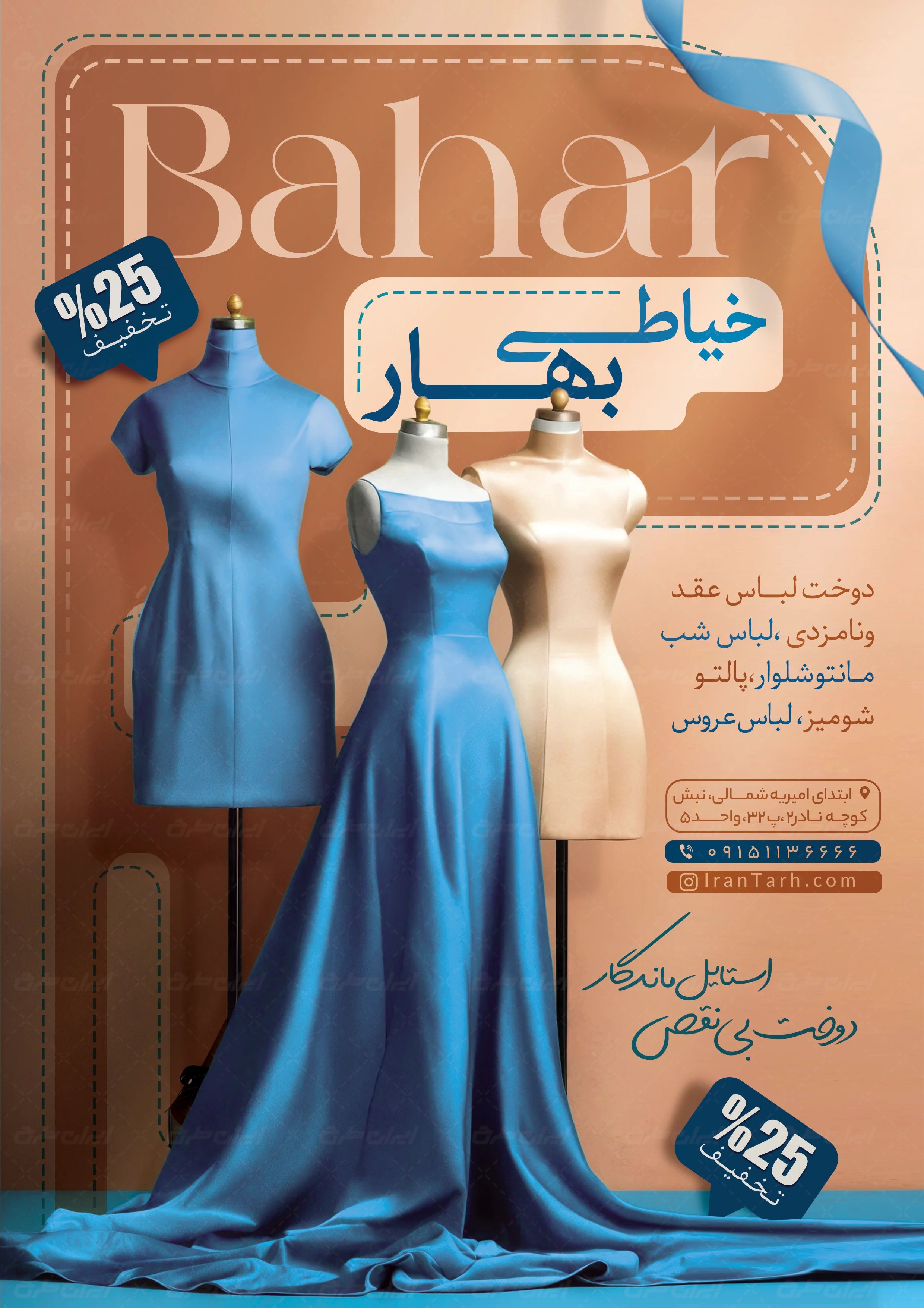 - استفاده مناسب از تصویر لباس مجلسی که مرتبط با طرح تراکت خیاطی زنانه می باشد.