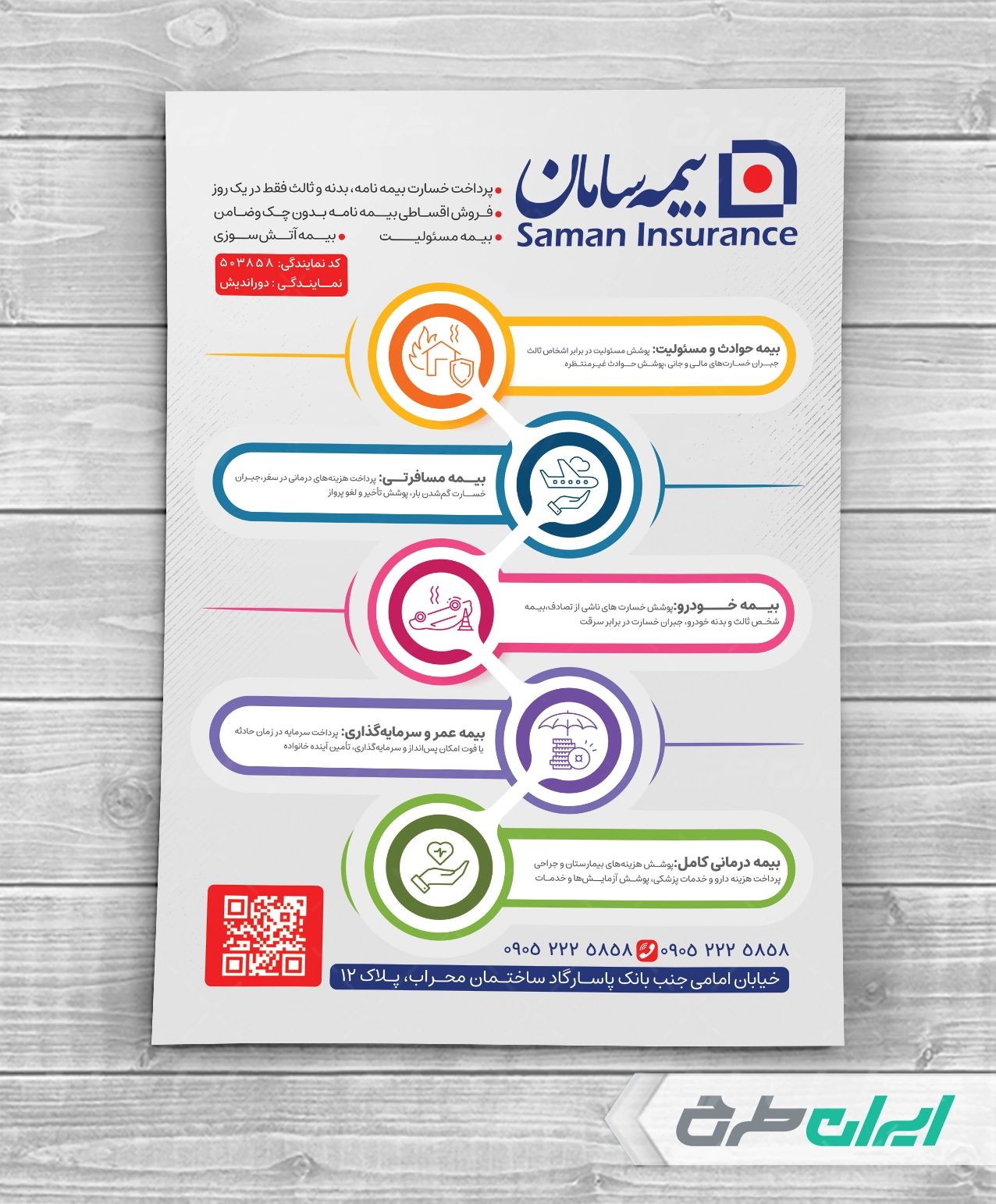 طرح تراکت بیمه سامان توسط تیم ایران طرح برای استفاده و تبلیغات این نهاد ها طراحی شده است.