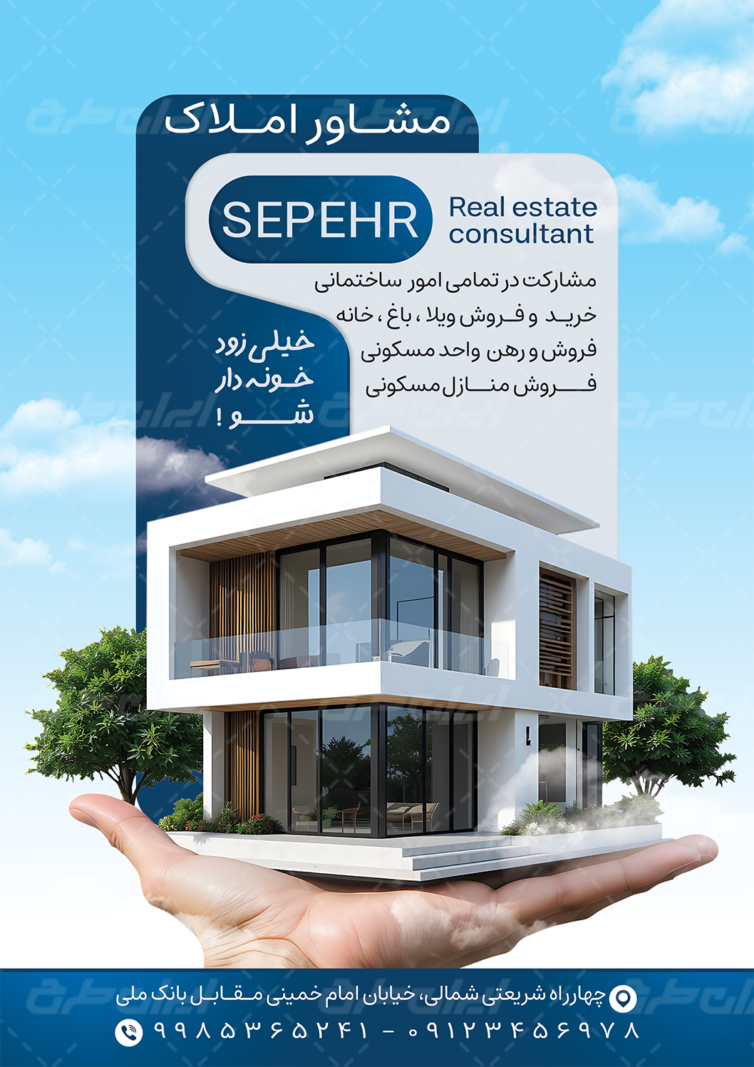 تیم ایران طرح طرح تراکت مشاور املاک را در نرم افزار فتوشاپ به صورت بسیار شیک و کاربردی طراحی کرده و در دسترس کاربران سایت قرار داده است.