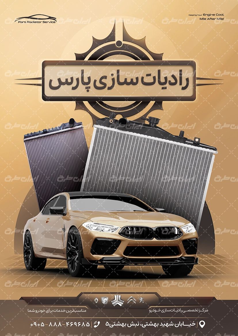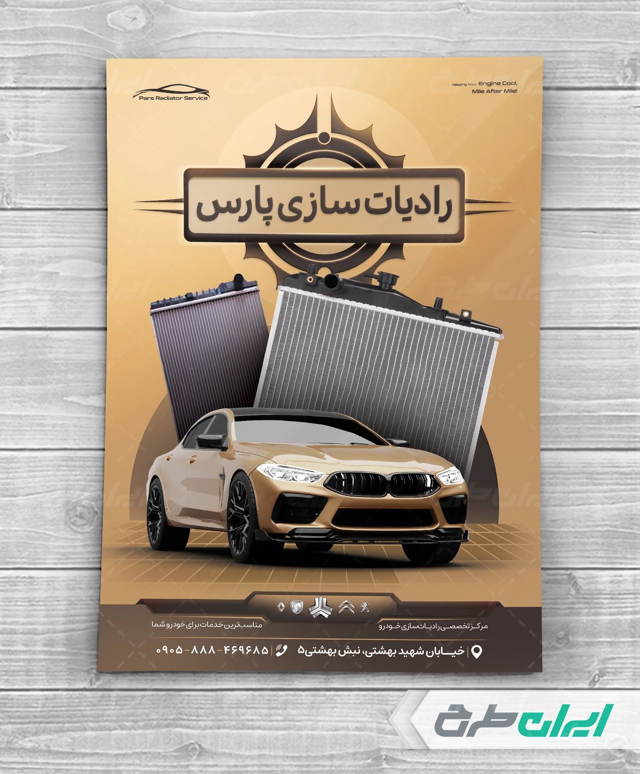 - طراحی ساده و کاربردی طرح تراکت رادیات سازی