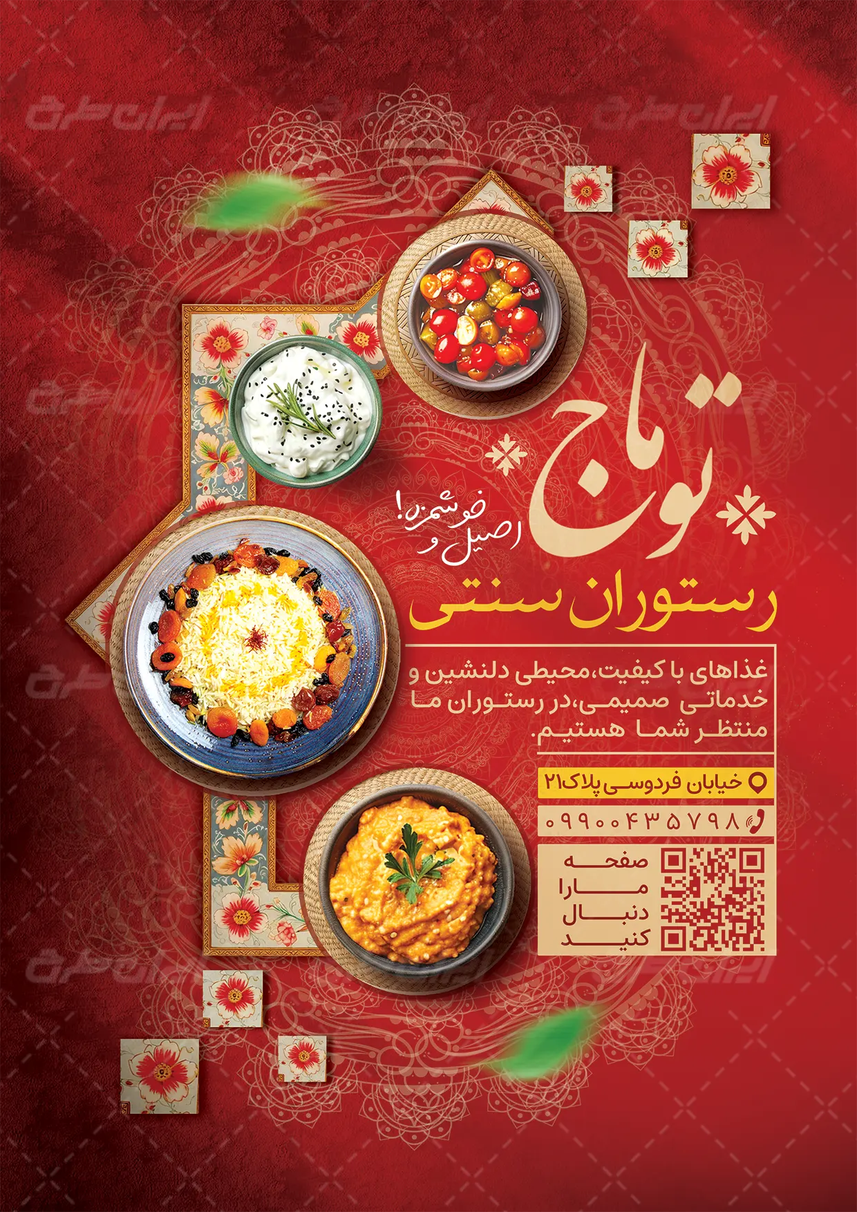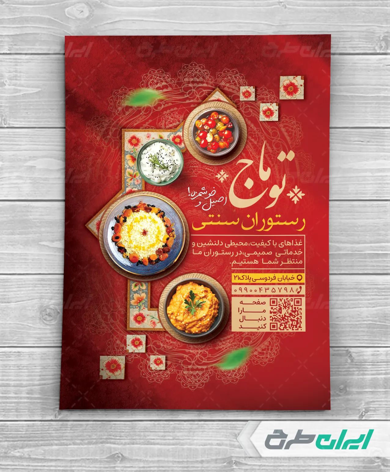 طرح تراکت رستوران با تصویر غذای ایرانی