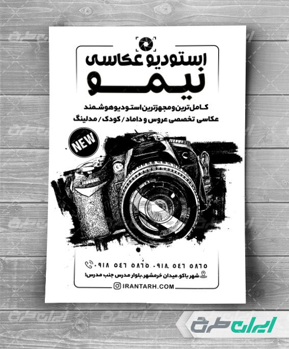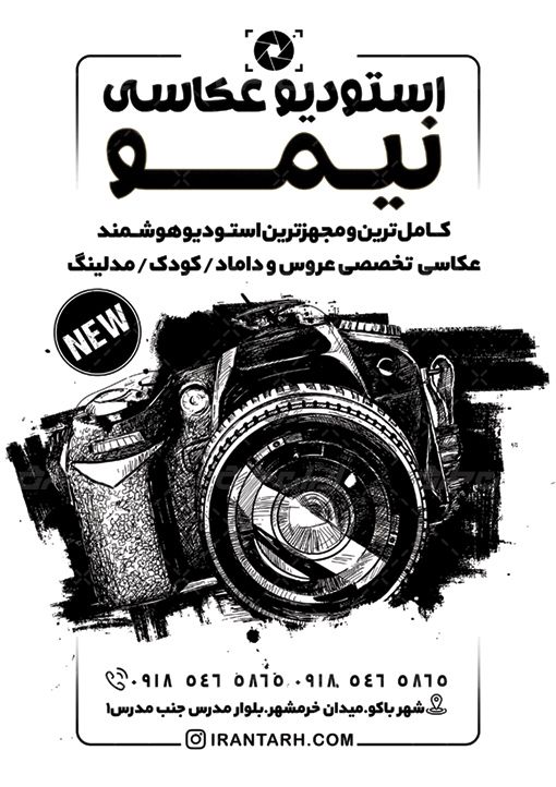 تیم ایران طرح طرح تراکت سیاه و سفید آتلیه عکاسی را برای بازاریابی و تبلیغات گسترده تر این فروشگاه ها طراحی و در دسترس کاربران سایت قرار داده است.